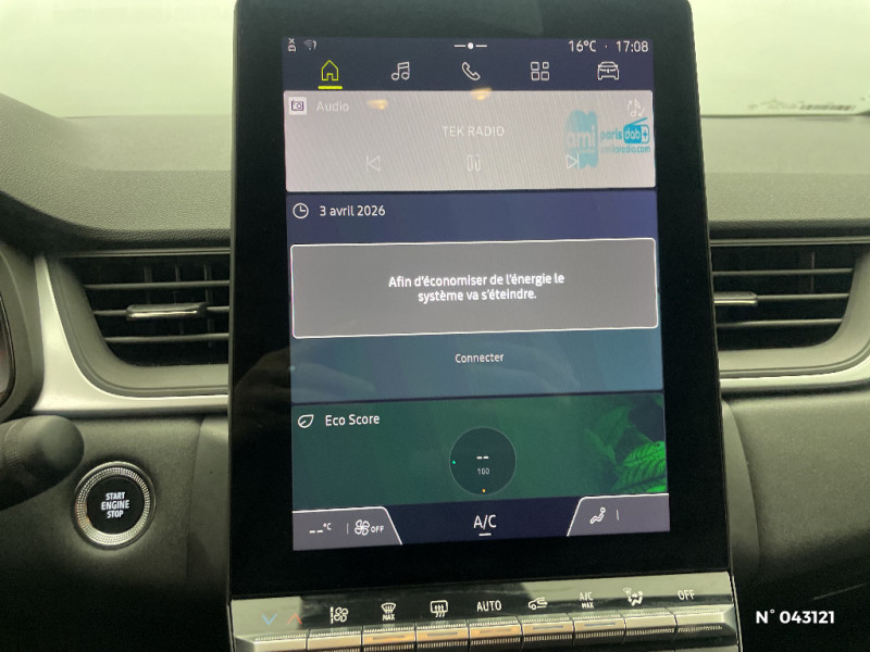 Ceinture centrale arrière 3 points / Kit de gonflage / Indicateur de changement de vitesse / Alerte Distance Sécurité / Poignées de portes ton caisse / Répétiteurs latéraux de changement de direction / Antenne Requin / Harmonie beige / Système ISOFIX (i-Size) aux places latérales AR et passager AV / Eclairage AV et AR Full LED Pure Vision / Boitier connect AIVC / Frein de parking électrique avec fonction Auto-Hold / Feux AR 3D / Volant en tissus / Alerte franchissement de ligne et assistant maintien dans la voie / Alerte détection de fatigue / Prédisposition éthylotest / My Safety switch (raccourci vers configuration personnalisée des aides à la conduite) / Liseuses LED / Feux AR avec signature lumineuse Y / Système de contrôle de trajectoire ESC avec aide au démarrage en côte / Ouverture du hayon manuelle / Enjoliveurs 17'' Nymphea / Console centrale AV avec accoudoir et rangement / OpenR link 10,4?? access display audio avec tableau de bord avec écran numérique et personlisable 7" / Système multimédia OpenR link 10'4 avec réplication smartphone (Android Auto & Apple Carplay) / Peinture nacrée / Contrôle de la traction (TCS) / Boîte de vitesse automatique 4 rapports