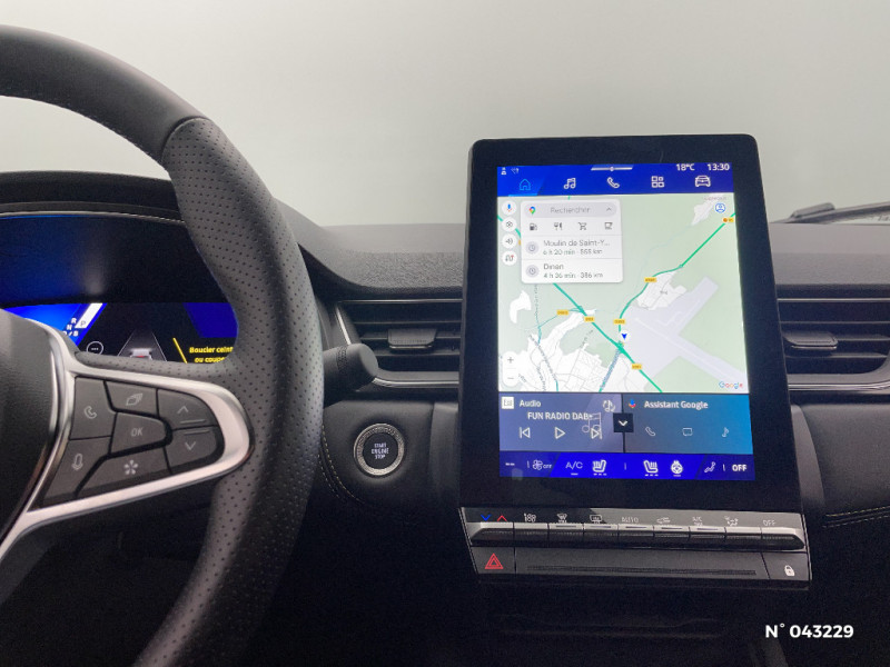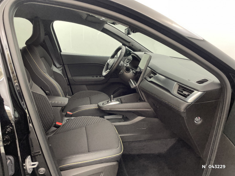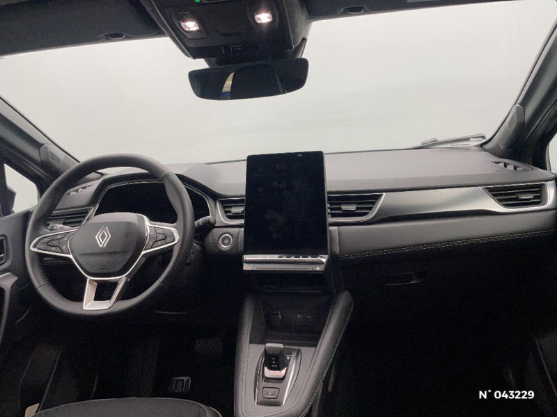 Tableau de bord avec écran numérique et personnalisable 10" / Miroirs de courtoisie rétroéclairés / Parking mains-libres / Jantes alliage 19'' diamantées Pulsar / Système multimédia openR link 10.4" avecGoogle intégré / Feux AR avec signature lumineuse Y / Système de contrôle de trajectoire ESC avec aide au démarrage en côte / Contrôle de la traction (TCS) / Boîte de vitesse automatique 4 rapports / Harmonie Ionic / Pack contrôle à distance (via l?application My Renault), inclus pendant 5 ans / Mise à jour système (via firmware over the air FOTA), inclus pendant 5 ans / Maintenance connectée, incluse pendant 8 ans / Pack connected driving, inclus pendant 5 ans / Boîte de vitesse hybride multimode 6 rapports / Sièges AV à réglage électrique 6 voies et conducteur réglage manuel lombaire / Avertisseur d'angle mort et détection AR avec centrage dans la voie / Ceinture centrale arrière 3 points / Kit de gonflage / Indicateur de changement de vitesse / Alerte Distance Sécurité / Poignées de portes ton caisse / Volant chauffant / Répétiteurs latéraux de changement de direction / Caméra 360° / Antenne Requin / Système ISOFIX (i-Size) aux places latérales AR et passager AV / Eclairage AV et AR Full LED Pure Vision / Renault Multi-sense / Boitier connect AIVC / Système ISOFIX (i-Size) aux places AR (latérales) / Frein de parking électrique avec fonction Auto-Hold / Feux AR 3D / Hayon motorisé main libre / Alerte franchissement de ligne et assistant maintien dans la voie / Avertisseur de sortie de stationnement en marche AR avec freinage d'urgence automatique / Rétroviseur intérieur chrome frameless / Alerte détection de fatigue / Prédisposition éthylotest / Alerte sortie sécurisée des occupants / Compartiment de coffre / My Safety switch (raccourci vers configuration personnalisée des aides à la conduite) / Cartographie Standard