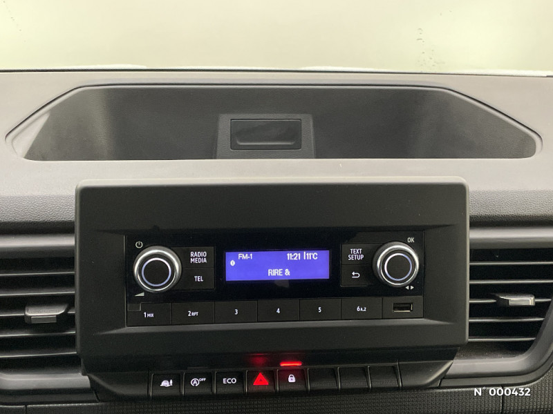 ABS + EBV + AFU (ABS, Répartiteur Electronique de Freinage, Assistance au Freinage d'Urgence) / Portes AR 180° tôlées / Sans Crochet-porte manteau / Anneaux d'arrimage côtés de caisse / Roues tôlées 16" / Côtés de caisse tôlés / Clé 3 boutons / Peinture opaque / Cloison complète tôlée / Loquet de blocage porte AR gauche / Panneau latéral gauche tolé / Sellerie tissu Kompo / Alerte d'oubli ceinture de sécurité conducteur et passagers / Siège conduct avec réglage lombaires+accoudoir / Avec SCR / Harmonie noir titane grain géométrique / Alerte oubli de ceinture conducteur et passagers / Radio DAB R-20 avec USB, Bluetooth / Eclairage bulbe dans l'habitacle / Tableau de bord analogique couleur 3"5 / Bouclier AV semi-ton caisse +Bouclier AR,Protections latérales, Colonnes feux AR,Rétro "noir grainé" / Habillage latéral mi hauteur / Sans boitier connecté AIVC / Lève-vitres AV impulsionnel côté conducteur