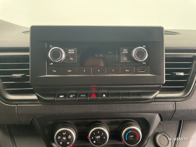 Roues tôlées 16" / ABS + EBV + AFU (ABS, Répartiteur Electronique de Freinage, Assistance au Freinage d'Urgence) / Portes AR 180° tôlées / Sans Crochet-porte manteau / Anneaux d'arrimage côtés de caisse / Côtés de caisse tôlés / Clé 3 boutons / Peinture opaque / Cloison complète tôlée / Loquet de blocage porte AR gauche / Panneau latéral gauche tolé / Sellerie tissu Kompo / Alerte d'oubli ceinture de sécurité conducteur et passagers / Siège conduct avec réglage lombaires+accoudoir / Avec SCR / Harmonie noir titane grain géométrique / Alerte oubli de ceinture conducteur et passagers / Radio DAB R-20 avec USB, Bluetooth / Eclairage bulbe dans l'habitacle / Tableau de bord analogique couleur 3"5 / Bouclier AV semi-ton caisse +Bouclier AR,Protections latérales, Colonnes feux AR,Rétro "noir grainé" / Habillage latéral mi hauteur / Sans boitier connecté AIVC / Lève-vitres AV impulsionnel côté conducteur
