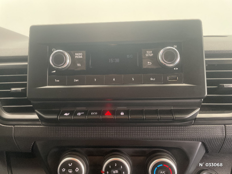 Harmonie noir titane grain géométrique / Siège conduct avec réglage lombaires+accoudoir / Alerte oubli de ceinture conducteur et passagers / Radio DAB R-20 avec USB, Bluetooth / Eclairage bulbe dans l'habitacle / Tableau de bord analogique couleur 3"5 / Bouclier AV semi-ton caisse +Bouclier AR,Protections latérales, Colonnes feux AR,Rétro "noir grainé" / Habillage latéral mi hauteur / Sans boitier connecté AIVC / Lève-vitres AV impulsionnel côté conducteur / Avec SCR / Roues tôlées 16" / ABS + EBV + AFU (ABS, Répartiteur Electronique de Freinage, Assistance au Freinage d'Urgence) / Portes AR 180° tôlées / Sans Crochet-porte manteau / Anneaux d'arrimage côtés de caisse / Côtés de caisse tôlés / Clé 3 boutons / Cloison complète tôlée / Loquet de blocage porte AR gauche / Panneau latéral gauche tolé / Sellerie tissu Kompo / Alerte d'oubli ceinture de sécurité conducteur et passagers