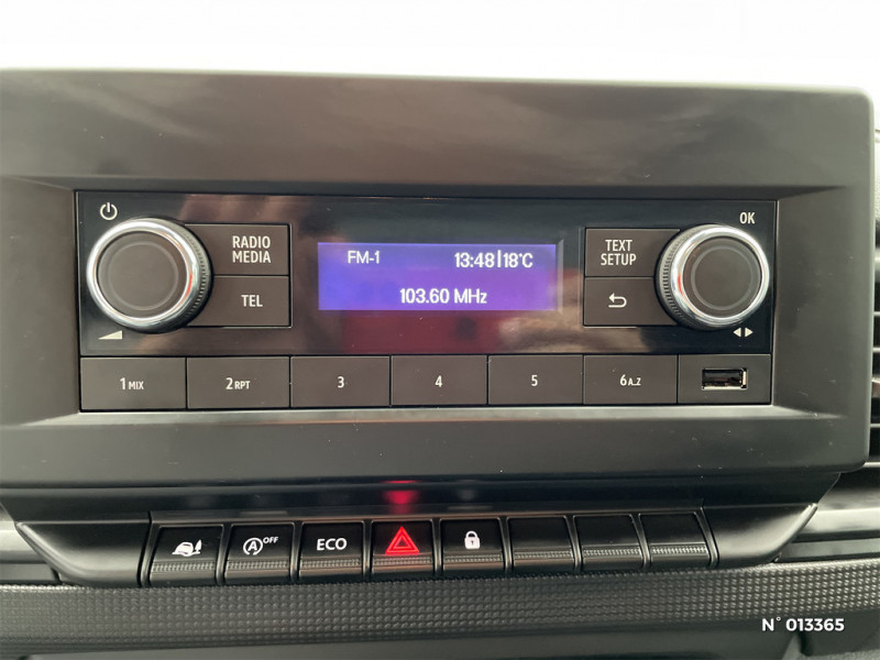Cloison complète tôlée / Sans Crochet-porte manteau / Loquet de blocage porte AR gauche / Panneau latéral gauche tolé / Sellerie tissu Kompo / Alerte d'oubli ceinture de sécurité conducteur et passagers / Prise 12V en zone de chargement / Siège conduct avec réglage lombaires+accoudoir / Avec SCR / Harmonie noir titane grain géométrique / Alerte oubli de ceinture conducteur et passagers / Radio DAB R-20 avec USB, Bluetooth / Eclairage bulbe dans l'habitacle / Tableau de bord analogique couleur 3"5 / Bouclier AV semi-ton caisse +Bouclier AR,Protections latérales, Colonnes feux AR,Rétro "noir grainé" / Habillage latéral mi hauteur / Sans boitier connecté AIVC / Lève-vitres AV impulsionnel côté conducteur / Anneaux d'arrimage côtés de caisse / Côtés de caisse tôlés / Clé 3 boutons / Roues tôlées 16" / ABS + EBV + AFU (ABS, Répartiteur Electronique de Freinage, Assistance au Freinage d'Urgence) / Portes AR 180° tôlées
