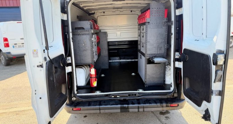 Renault Trafic Vu FOURGON 1.6 DCI 120 L1H1. 1000 kg GRAND-CONFORT, blanc, 5 cv, 4 portes, première mise en circulation 15/12/2020 . 49500 KM 3 places Véhicule origine France / première main / retour de leasing / Prix affiché TTC- 19500 soit 16250 HT - TVA récupérable =====Garantie 12 mois national Premium ===== - Général Boîte de vitesse : Manuelle Énergie : Diesel - Historique Kilométrage : 85000 km Provenance : France / première main / historique d'entretien disponible . CT-OK - Esthétique Couleur : blanc metal Sellerie : tissu noir - Dimensions et châssis Nombre de portes : 4 Nombre de places : 3 Longueur : 5 m - Puissance Puissance fiscale : 5 CV Puissance DIN : 95ch - Consommation Norme euro : EURO6 Crit'Air : 2 - Extérieur et Chassis Rétroviseurs extérieurs chauffants Ampoules de phares LED Rétroviseurs extérieurs réglage électrique Roue de secours Aide parking/ Porte latérale coulissante Projecteurs xénon Rétroviseurs électriques - Intérieur Limiteur de vitesse Volant multi-fonction Bluetooth inclut musique en streaming, connexion téléphone Ordinateur de bord Air conditionné manuel Bluetooth 2 haut-parleurs Régulateur de vitesse Réglage du volant en hauteur, en profondeur Accoudoir central avant Boite 6 vitesses Climatisation Direction assistée Pack clim Pack multimédia Plancher bois Protection bois Régulateur limiteur de vitesse Séparation cabine Système audio MP3 Vitres électriques - Sécurité 1 airbags Assistance au freinage d'urgence ESP Antipatinage ABS Aide au démarrage en côte Détecteur de pluie Feux et essuie-glaces automatiques TVA récupérable