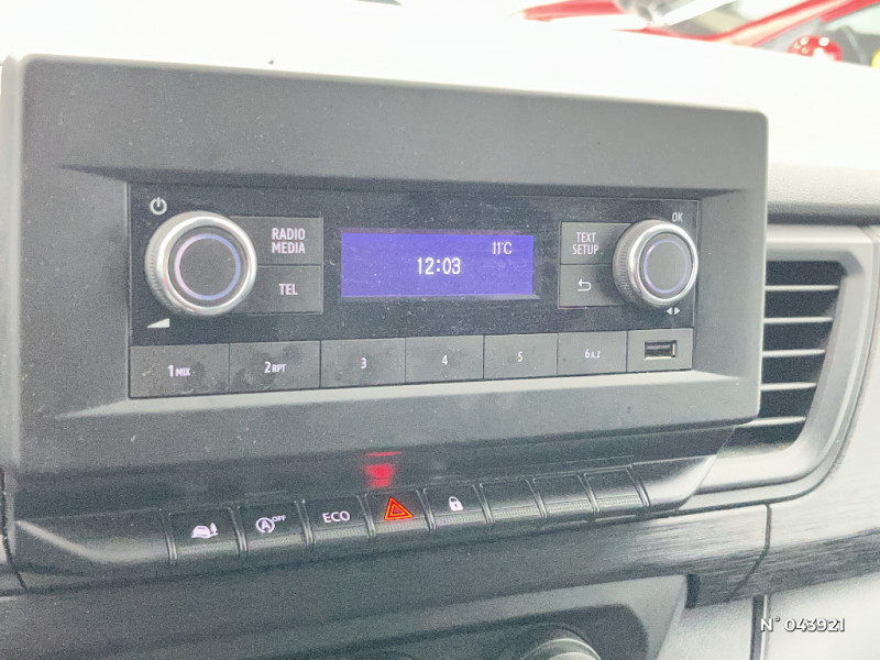 Roues tôlées 16" / Portes AR 180° tôlées / Kit de gonflage / Avertisseur de perte de pression des pneus / Côtés de caisse tôlés / Cloison complète tôlée / Panneau latéral gauche tolé / Sellerie tissu Kompo / Siège conduct avec réglage lombaires+accoudoir / Harmonie noir titane grain géométrique / Freinage actif d'urgence (AEBS City + Inter Urbain) / Alerte oubli de ceinture conducteur et passagers / Tableau de bord analogique couleur 3"5 / Habillage latéral mi hauteur / Prédisposition ethylotest / Alerte vigilance conducteur / Alerte de survitesse / EASY LINK écran 8" / Lève-vitres AV impulsionnel côté conducteur