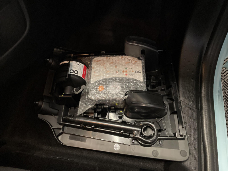 Cache-bagages / Kit de gonflage et de réparation / Pré-équipement alarme / Baguettes latérales Noir Grainé / Charge accélérée AC22 / Alarme de ceinture de securite (conducteur, passager et places AR) / Radio Connect R&Go avec support smartphone compatible avec l'application mobile R&Go & Push to talk / Nouveau rangement console centrale / Sellerie Foncée avec motifs Kario / Sac pour câble de recharge / Flexi charger / Airbags frontaux et latéraux (tête-thorax) conducteur et passager / Enjoliveurs 15" Makao / Evolution de gamme MY23