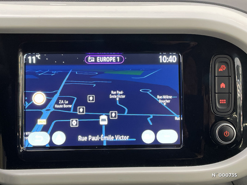 Alarme de ceinture de securite (conducteur, passager et places AR) / Sans facture batterie / Cache-bagages / Rétroviseurs extérieurs ton carrosserie / Kit de gonflage et de réparation / Pré-équipement alarme / Allonge de coffre / Harmonie Noire / Airbags frontaux et latéraux (tête-thorax) conducteur et passager / Compatible Android Auto et Apple CarPlay / Poignées de portes et rétroviseurs extérieurs ton caisse / Rangement portes AR / Rangements sous sièges AR / Nouveau rangement console centrale / Baguettes latérales ton caisse avec Jonc Chrome / Sellerie mixte Tep / Tissu / EASY LINK 7'' avec navigation connectée, Compatible Android Auto et Apple Carplay / Siège conducteur réglable en hauteur et siège passager rabattable One Touch / Strippings latéraux Z.E. / Sac pour câble de recharge / Flexi charger / Charge accélérée AC22