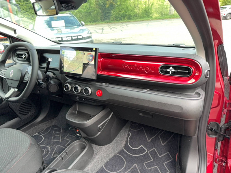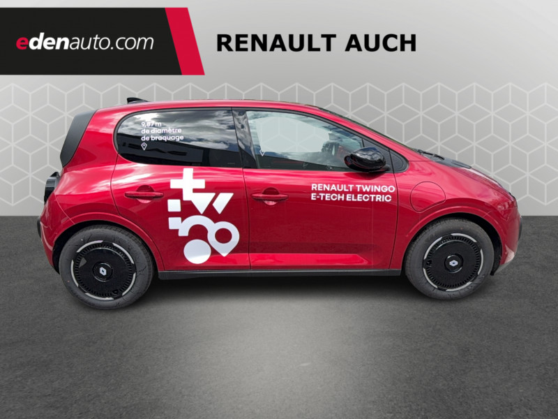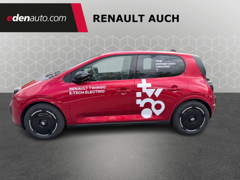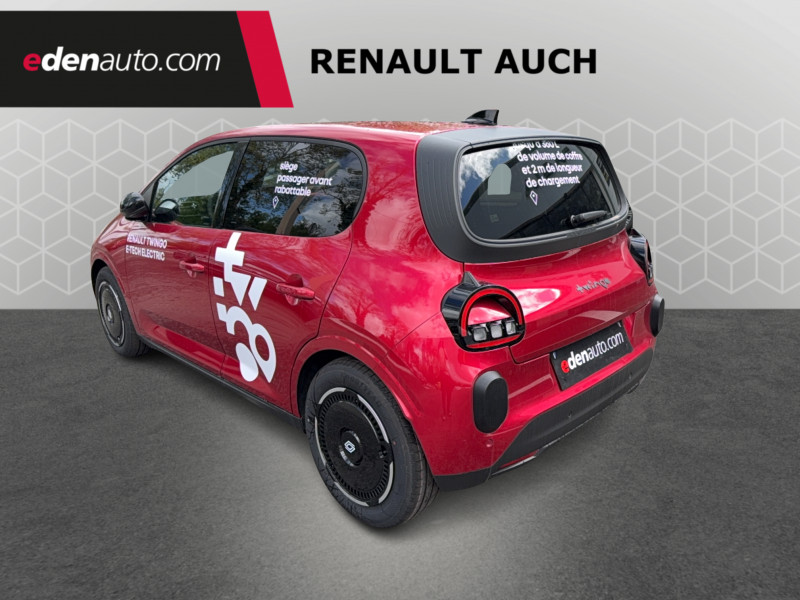 1 feu de recul / 2 prises USB-C et 1 prise 12V / 4 modes de freinage régénératif (dont fonction one pedal) réglables par palettes au volant / Antenne requin / Assistant maintien dans la voie et détection AV avec correction trajectoire d'urgence / Avertisseur de distance de sécurité (AV) / Boîte de vitesse automatisée à variation continue / Bouton my safety switch (désactivation des aides à la conduite) / Câble pour borne de recharge (mode 3 type 2 monophasé, 5m) / Carte mains-libres (accès et démarrage) / Ciel de toit gris clair chiné et embossé avec alphabet Twingo / Commutation automatique des feux de route/croisement / Contrôle de la traction (TCS) / Gestion automatique des essuie-glaces / Jantes acier avec enjoliveur 16" diabolo / Kit de réparation pour pneumatiques / Maintenance connectée, incluse pendant 8 ans / Mise a jour système à distance (via firmware over the air FOTA), inclus pour 5 ans / OpenR link 10,1'' : navigation, Google intégré, audio Arkamys® Auditorium, 6 haut-parleurs / Pack connectivité avancée / Pack standard connectivity, via l'app My Renault / Projecteurs et feux full LED / Reno, l'avatar officiel Renault / Réplication smartphone sans fil / Rétroviseur intérieur avec mode jour/nuit manuel / Sellerie textile chiné dégradé du gris au noir, surpiqûres rouges et jonc graphique noir et blanc / Siège conducteur réglable manuellement en hauteur et siège passager AV avec dossier rabattable / Sièges AR avec système ISOFIX / Sièges AR indépendants coulissants rabattables 50/50 / Son d'alerte piétons / Système de surveillance avancée du conducteur / Tableau de bord numérique 7" / Témoin et alerte de non-bouclage des ceintures de sécurité / Volant textile enduit grainé (TEP)