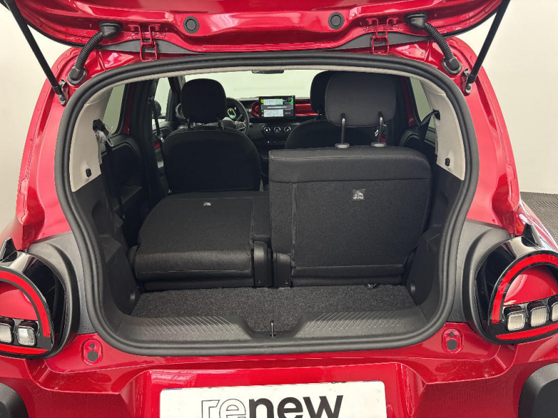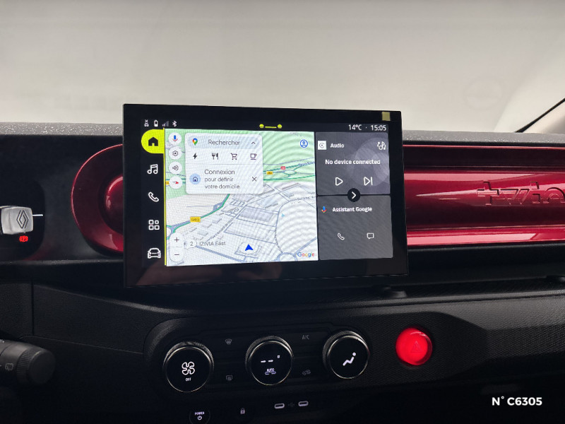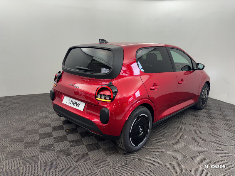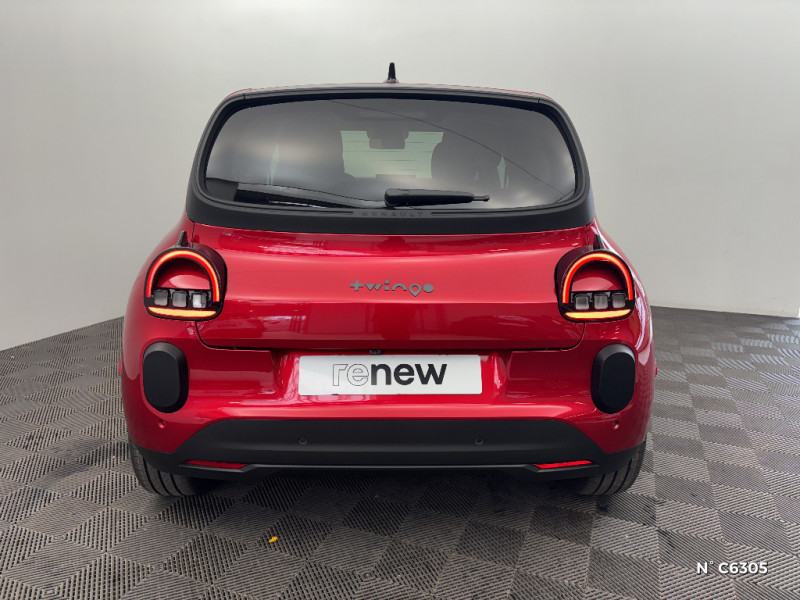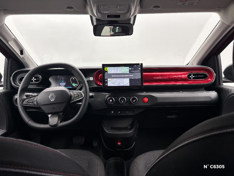 Maintenance connectée, incluse pendant 8 ans / Mise a jour système à distance (via firmware over the air FOTA), inclus pour 5 ans / OpenR link 10,1'' : navigation, Google intégré, audio Arkamys® Auditorium, 6 haut-parleurs / Pack advanced connectivity / Pack standard connectivity, via l'app My Renault / Projecteurs et feux full LED / Reno, l'avatar officiel Renault / Réplication smartphone sans fil / Rétroviseur intérieur avec mode jour/nuit manuel / Sellerie textile chiné dégradé du gris au noir, surpiqûres rouges et jonc graphique noir et blanc / Siège conducteur réglable manuellement en hauteur et siège passager AV avec dossier rabattable / Sièges AR avec système ISOFIX / Sièges AR indépendants coulissants rabattables 50/50 / Son d'alerte piétons / Système de surveillance avancée du conducteur / Tableau de bord numérique 7" / Témoin et alerte de non-bouclage des ceintures de sécurité / Volant textile enduit grainé (TEP) / 1 feu de recul / 2 prises USB-C et 1 prise 12V / 4 modes de freinage régénératif (dont fonction one pedal) réglables par palettes au volant / Boîte de vitesse automatisée à variation continue / Bouton my safety switch (désactivation des aides à la conduite) / Câble pour borne de recharge (mode 3 type 2 monophasé, 5m) / Carte mains-libres (accès et démarrage) / Ciel de toit gris clair chiné et embossé avec alphabet Twingo / Commutation automatique des feux de route/croisement / Contrôle de la traction (TCS) / Gestion automatique des essuie-glaces / Jantes acier avec enjoliveur 16" diabolo / Kit de réparation pour pneumatiques / Antenne requin / Assistant maintien dans la voie et détection AV avec correction trajectoire d¿urgence / Avertisseur de distance de sécurité (AV)