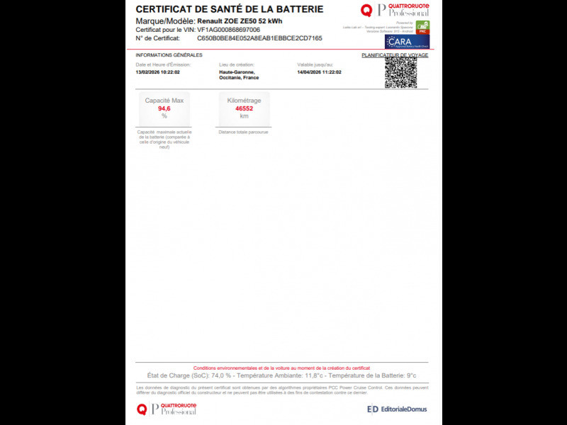 Informations essentielles de cette Zoe