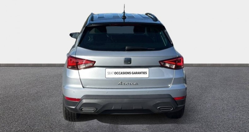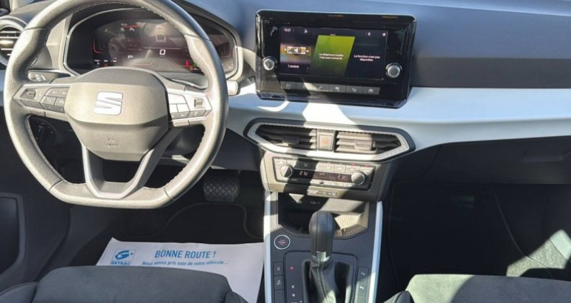 Cylindrée : 999 cm3 Nb. Vitesse : 7 - 2 Fixations ISOFIX + Top tether intégrées aux sièges AR - 3 appuie-têtes AR - 4 vitres électriques à impulsion avec sécurité enfant - Aide au démarrage en côte (HHC) - Aide au stationnement AR - Airbags frontaux, latéraux et rideaux AV (passager déconnectable) - Air conditionné - Alerte de non-bouclage des ceintures AV/AR - Anti-blocage des roues (ABS) et contrôle de stabilité électronique (ESC) - Antidémarrage électronique - Anti-patinage électronique (ASR) - Appel d'urgence eCall - Banquette AR rabattable 2/3-1/3 - Capteur de luminosité - Ceintures de sécurité à 3 points - Connectivité 2x USB-C et Bluetooth - Connectivity Box avec chargeur à induction - Console centrale avec applications Gris NASA - Couvre-coffre rabattable - Détecteur de fatigue - Détection de sous-gonflage des pneumatiques électronique - Digital Cockpit 8 - Eclairage de plancher et de console centrale à LED - Eclairage de plaque d'immatriculation à LED - Entourages d'aérateurs Gris City - ESC (Contrôle de stabilité électronique) - Filtre à particules essence - Front Assist avec détection des piétons et des cyclistes - Full Link sans fil (Apple CarPlay et Android Auto) - Full Link USB (Android Auto + Apple CarPlay) - Garantie 2 ans, kilométrage illimité - Inserts de custode en X noirs - Jantes alliage 17 URBAN DESIGN, pneus 205/55 R17 91V - Kit anti-crevaison - Lampes de lecture AV (2x) - Lane Assist - aide au maintien dans la voie - Levier de frein à main en cuir synthétique - Logos SEAT satinés AV/AR et sur le volant - Ordinateur de bord avec affichage de la température extérieure - Pack Easy Keyless Access (accès et démarrage mains-libres) Connectivity Box (chargeur à induction pour téléphone mobile) *** Avec : Connectivity Box avec chargeur à induction *** Avec : Keyless Access - Pack Spring Feux et essuie-glaces automatiques, climatisation automatique Climatronic bizone, rétroviseurs extérieurs chauffants et rabattables électriquement, rétroviseur intérieur jour/nuit automatique et éclairage d'accompagnement - Pack Spring Light - Pack Streamline Design Bouclier AV au style épuré sans feux antibrouillard - Pack Vision Plus Caméra de recul, aide au stationnement AV et AR, Park assist - Pare-chocs couleur carrosserie - Pare-soleil avec porte-carte côté conducteur - Peinture Bi-ton - Planche de bord moussée avec insert Gris NASA - Plancher de coffre à double fond - Poignées de portes couleur carrosserie - Projecteurs Full LED avec signature lumineuse triangulaire - Radio Numérique DAB - Rails de toit longitudinaux - Régulateur/Limiteur de vitesse - Rétroviseurs extérieurs couleur carrosserie - Rétroviseurs extérieurs réglables électriquement avec rabattement manuel - Rétroviseurs extérieurs réglables électriquement intégrant les répétiteurs de clignotants latéraux - SEAT Connect Media - Sellerie tissu gris COMO à pois - Siège conducteur réglable en hauteur - Sièges Confort - Signature Arona manuscrite sur le hayon - Start & Stop - Système audio à 6 HP - Système d'info-divertissement MediaSystem+ avec écran tactile HD 8,25'' - Tapis de sol textile AV/AR - Verrouillage centralisé avec 2 télecommandes - Vitres AR surteintées - Volant Sport multifonctions à méplat en cuir Nappa