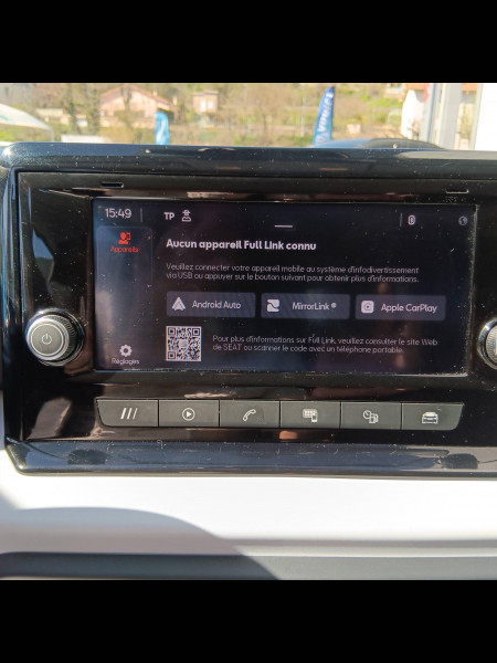 Eclairage d'ambiance intérieur à LED / Eclairage de plaque d'immatriculation à LED / Feux AR à LED avec signature lumineuse triangulaire / Jantes alliage 17" URBAN DESIGN, pneus 205/55 R17 91V / Lane Assist - aide au maintien dans la voie / Pack Spring Feux et essuie-glaces automatiques, climatisation automatique Climatronic bizone, rétroviseurs extérieurs chauffants et rabattables électriquement, rétroviseur intérieur jour/nuit automatique et éclairage d'accompagnement / Pack Streamline Design Bouclier AV au style épuré sans feux antibrouillard / Pack Vision Plus Caméra de recul, aide au stationnement AV et AR, Park assist / Projecteurs Full LED avec signature lumineuse triangulaire / Volant sport multifonctions à méplat en cuir / 2 Fixations ISOFIX + Top tether intégrées aux sièges AR / 4 vitres électriques à impulsion avec sécurité enfant / Airbags frontaux, latéraux et rideaux AV (passager déconnectable) / Alerte de non-bouclage des ceintures AV/AR / Anti-blocage des roues (ABS) et contrôle de stabilitéélectronique (ESC) / Connectivité 2x USB-C et Bluetooth / Console centrale avec applications Gris NASA / Couvre-coffre rabattable / Digital Cockpit 8" / Détection de sous-gonflage des pneumatiques électronique / Entourages d'aérateurs Gris City / ESC (Contrôle de stabilitéélectronique) / Front Assist avec détection des piétons et des cyclistes / Garantie 2 ans, kilométrage illimité / Inserts de custode en "X" / Kit anti-crevaison / Lampes de lecture AV (2x) / Logos "SEAT" satinés AV/AR et sur le volant / Pare-chocs couleur carrosserie / Pare-soleils avec miroirs de courtoisie et porte-carte côté conducteur / Planche de bord moussée avec insert Gris NASA / Plancher de coffre à double fond / Poignées de portes couleur carrosserie / Rails de toit longitudinaux / Rétroviseurs extérieurs couleur carrosserie / Rétroviseurs extérieurs réglables électriquement intégrant les répétiteurs de clignotants latéraux / SEAT Connect Media / Signature "Arona" manuscrite sur le hayon / Système d'info-divertissement MediaSystem+ avec écran tactile HD 8,25'' / Tapis de sol textile AV/AR