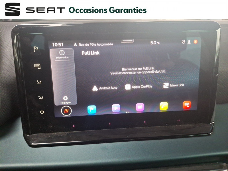 Activation automatique des essuie-glaces / Allumage automatique des projecteurs avec éclairage d'accompagnement / Eclairage d'ambiance intérieur à LED / Eclairage de plancher et de console centrale à LED / Eclairage de plaque d'immatriculation à LED / Feux AR à LED avec signature lumineuse triangulaire / Inserts de custode en "X" en aluminium anodisés / Jantes alliage 17" DYNAMIC, pneus 205/55 R17 91V / Lane Assist - aide au maintien dans la voie / Levier de frein à main en cuir synthétique / Pack Design Xperience Avec protections de carrosserie AV et AR Gris Aluminium / Pack Drive Assist Reference / Pack Rangement Accoudoir central AV, coffre de rangement sous le siège passager, porte-documents sous le siège conducteur et crochets d'arrimage dans le coffre / Pack Spring Light / Pack Streamline Design Bouclier AV au style épuré sans feux antibrouillard / Pack Vision Plus Caméra de recul, aide au stationnement AV et AR, Park assist / Pommeau de levier de vitesse cuir véritable / Projecteurs Full LED avec signature lumineuse triangulaire / Rails de toit en aluminium anodisé / Système de navigation Europe avec écran tactile couleur 9,2" / Volant Sport multifonctions à méplat en cuir Nappa / 2 Fixations ISOFIX + Top tether intégrées aux sièges AR / 4 vitres électriques à impulsion avec sécurité enfant / Airbags frontaux, latéraux et rideaux AV (passager déconnectable) / Alerte de non-bouclage des ceintures AV/AR / Aérateurs latéraux rétro-éclairés / Calandre spécifique Xperience avec contour et estampillage chromés / Ciel de pavillon Noir / Combiné d'instrumentation analogique / Connectivity Box avec chargeur à induction / Console centrale et poignées de portes AV avec applications Vert Mistral / Contours de vitres anodisés / Couvre-coffre rabattable / Détection de sous-gonflage des pneumatiques électronique / Entourages d'aérateurs centraux et latéraux gris satinés avec inserts Vert Oxygène / ESC / Front Assist avec détection des piétons et des cyclistes / Full Link sans fil (Android Auto + Apple CarPlay) / Full Link USB (Android Auto + Apple CarPlay) / Garantie 2 ans, kilométrage illimité / Inserts de planche de bord, de portières et de console centrale Vert Mistral / Keyless Access / Kit anti-crevaison / Lampes de lecture AV (2x) / Logos "SEAT" satinés AV/AR et sur le volant / Ordinateur de bord avec affichage de la température extérieure / Pare-chocs couleur carrosserie / Pare-soleil avec porte-carte côté conducteur / Pare-soleils avec miroir de courtoisie / Planche de bord moussée avec insert Vert Mistral / Plancher de coffre à double fond / Poignées de portes couleur carrosserie / Rails de toit longitudinaux / Rétroviseur intérieur électrochromatique / Rétroviseurs extérieurs de coques couleur contrastante / Rétroviseurs extérieurs réglables électriquement intégrant les répétiteurs de clignotants latéraux / SEAT Connect Media & Internet / Seuils de porte siglés ''XPERIENCE'' / Signature "Arona" manuscrite sur le hayon / Tapis de sol textile AV/AR