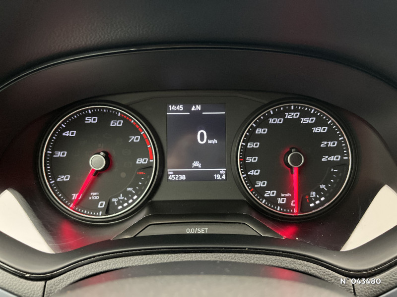 Anti-patinage électronique (ASR), assistance au freinage d'urgence (EBA) / Full Link (MirrorLink + Android Auto + Apple CarPlay) / Lecteur de cartes SD / Rétroviseurs réglables électriquement avec rappels latéraux de clignotant intégrés / Sortie d'échappement cachée / Tapis de sol textile à l'AV et à l'AR / Couvre-coffre rabattable / Rétroviseur intérieur avec position nuit à actionnement manuel / ABS électronique (système antiblocage des roues) avec alerte de pression des pneumatiques / Système "Start-Stop" automatique et dispositif de récupération de l'énergie de freinage / Verrouillage centralisé, avec 2 clés pliantes radiocommandées / Pare-soleil avec porte-carte côté conducteur / Projecteurs à technologie LED / Kit anti-crevaison / Pare-soleils pour le conducteur et le passager AV (avec porte-cartes et miroirs) / Alerte de non-bouclage des ceintures à l'AR / Alerte de non-bouclage des ceintures à l'AV / Airbags frontaux conducteur et passager (passager déconnectable) / 6 HP / Contour de calandre chromé / Rails de toit noirs / Volant multifonctions et levier de vitesse en cuir / Compte-tours / Rétroviseurs extérieurs et poignées de portes couleur carrosserie / Mapcare® mise à jour de cartographie pendant 1 an / Pare-soleils pour le conducteur et le passager (avec porte-cartes et miroir) / 2 prises USB-C éclairées / Eclairage d'ambiance / Prise Aux-in / Connectivity Box avec chargeur à induction / Plancher de coffre à double fond / Toit de la couleur de la carrosserie / Phares antibrouillard AV avec fonction "Cornering light" / Système Multimédia avec écran tactile couleur 6,5'' / Tableau de bord noir Titan avec insert Gris / Front assist avec freinage d'urgence et détection de piétons / Console centrale avec applications Grises / Jantes alliage 17'' "DESIGN" pneus 205/55 R17 / Sellerie en suédine, tableau de bord noir Titan avec insert Gris, console centrale avec applications Grises / Pneumatiques à ultra-basse résistance au roulement / Rails de toit longitudinaux / Jantes alliage 17" "DYNAMIC MACHINED" avec pneus 205/55 R17 / Eclairage d'ambiance le long des contre-portes et sous la planche de bord / Insert de custode en "X" / Eclairage de plaque d'immatriculation à LED / Pack Reference / Pack Reference Plus / Poignées de portes couleur carrosserie / Compte-tours électronique / Témoin de niveau de carburant / Pare-chocs couleur carrosserie / Garantie 2 ans kilométrage illimité / Airbags latéraux tête/thorax à l'AV / Lave-glace AR à balayage intermittent / Park Assist / Pack Vision+ / Système de navigation Europe tactile 8" avec lecteur CD (dans la boîte à gants) / 2 prises USB, 2 ports SD et commande vocale / Direction assistée électromécanique asservie à la vitesse / 2 Fixations ISOFIX + Top tether intégrées aux sièges AR / Ordinateur de bord avec affichage de la température extérieure / Levier de frein à main cuir / Lampes de lecture AV / Projecteurs AV avec feux de jour à LED / SEAT Connect
