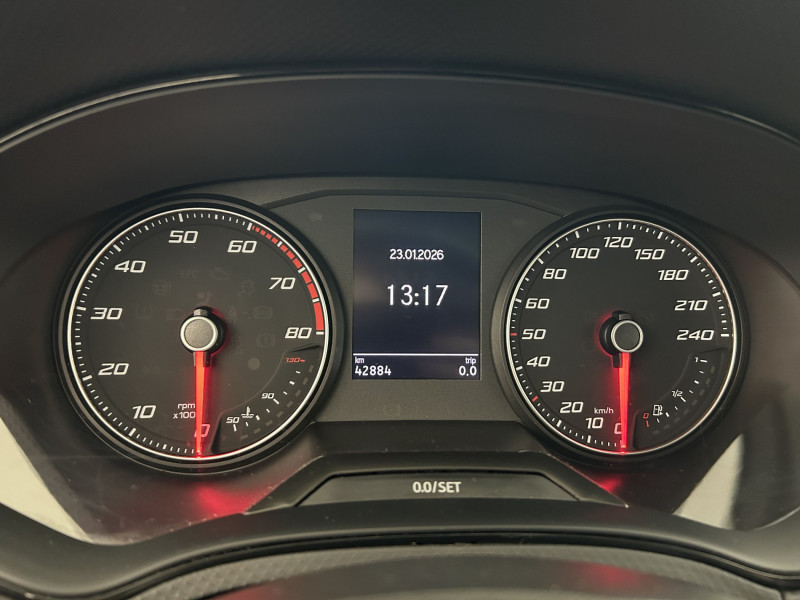 Combiné d'instrumentation analogique / Connectivité 2x USB-C et Bluetooth / Connectivity Box avec chargeur à induction / Eclairage de plancher intérieur et console centrale / Entourages d'aérateurs Gris City / Full Link USB (Android Auto + Apple CarPlay) / Jantes alliage 17" URBAN DESIGN / Pack Vision Plus Caméra de recul, aide au stationnement AV et AR, Park assist / Pare-soleil avec miroir de courtoisie éclairé / Park Assist / Projecteurs Full LED et feux AR à LED avec signature lumineuse triangulaire / SEAT Connect Media / Sellerie textile grise COMO à pois, planche de bord moussée avec insert Gris NASA / Système d'info-divertissement MediaSystem+ avec écran tactile 8,25'' / Volant Sport multifonctions à méplat en cuir Nappa et levier de frein à main en cuir synthétique /