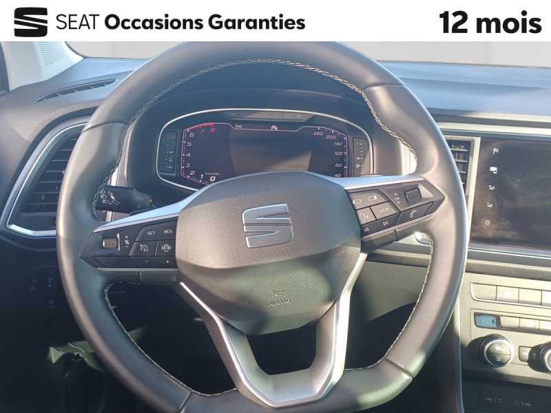 Jantes alliage 17 Dynamic Machined / Digital Cockpit / Activation automatique des feux de détresse lors d'un freinage d'urgence / Aide au démarrage en côte (Hill Hold Control) / Caméra de recul avec aide au stationnement AR / Climatisation automatique bi-zone Climatronic avec système Pure Air / Pommeau de levier de vitesse cuir véritable / Rétroviseurs extérieurs dégivrants et rabattables électriquement avec abaissement automatique du rétroviseur passager en marche AR / Système Start-Stop automatique et dispositif de récupération de l'énergie de freinage / 2 / Volant Sport multifonctions en cuir à méplat avec palettes / Welcome lights (Éclairage LED projetant Hola! au sol) / 2 Fixations Isofix + Top tether intégrées aux sièges AR pour ancrage de sièges enfant / 2 prises USB-C éclairées / 2 prises USB-C éclairées AR avec filet de rangement pour téléphone mobile / ABS électronique (système antiblocage des roues) avec alerte de pression des pneumatiques / Accoudoir central à l'AV avec compartiment de rangement / Affichage de la périodicité d'entretien / Airbag de genoux (côté conducteur) / Airbags frontaux conducteur et passager (passager déconnectable) / Airbags latéraux tête/thorax AV / Antenne de toit type requin / Anti-patinage électronique (ASR) / Aumônières de rangement au dos sièges AV / Banquette AR rabattable en 2 parties asymétriques / Console centrale / volant et aérations avec applications noires satinées / Contour de calandre chromé / Contre-portes en textile Olot / Couvre-coffre rabattable / Différentiel XDS / Détecteur de fatigue / Détecteur de pluie et luminosité / Frein à main électrique / Front Assist : système de surveillance périmétrique avec fonction de freinage de secours en ville / Full Link (MirrorLink + Android Auto + Apple CarPlay) / Inserts de pare-chocs AV/AR chromés / Keyless Access (accès et démarrage mains-libres) / Kit anti-crevaison / Lampes de lecture AV/AR / Oeilletons de fixation (4) dans le coffre / 5 couleur / 5'' avec affichage de la température extérieure / Pare-chocs couleur carrosserie / Pneumatiques à ultra-basse résistance au roulement / Porte-documents sous le siège conducteur / Rails de toit et entourages des vitres latérales chromés / Réglage en hauteur et réglage lombaire du siège conducteur / Rétroviseur intérieur électrochrome / Rétroviseurs extérieurs et poignées de portes couleur carrosserie / Rétroviseurs réglables électriquement avec rappels latéraux de clignotant intégrés / SEAT Connect Media & Internet / Siège passager réglable en hauteur manuellement avec réglage lombaire / Spots de lecture AV / Système audio à 4 haut-parleurs avec prise USB-C / Système d'info-divertissement MediaSystem+ avec écran tactile 8 / 25'' / Tableau de bord noir Titane avec insert gris ATOM / Tapis de sol textile AV/AR / Vitres AV/AR électriques à impulsion avec verrouillage