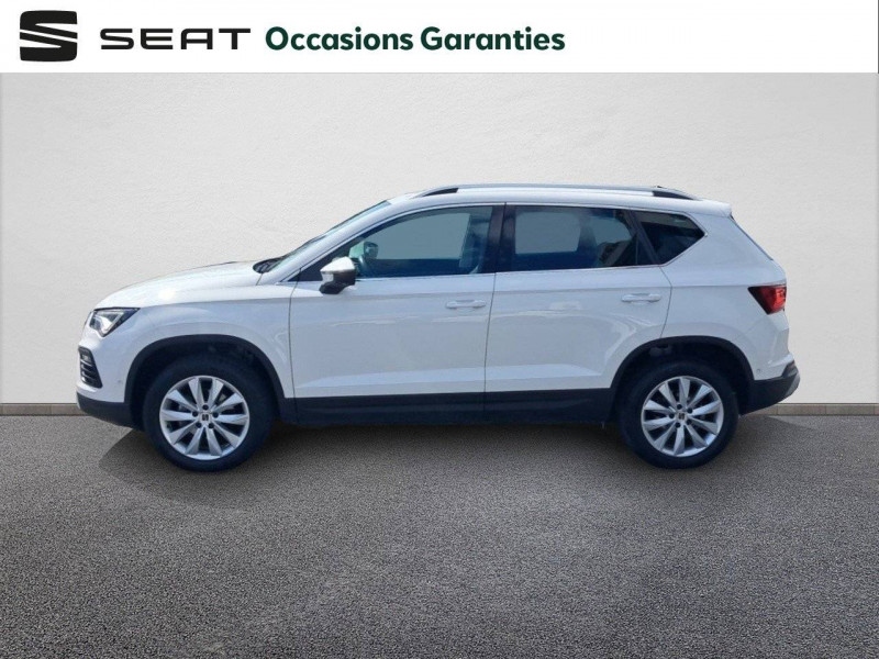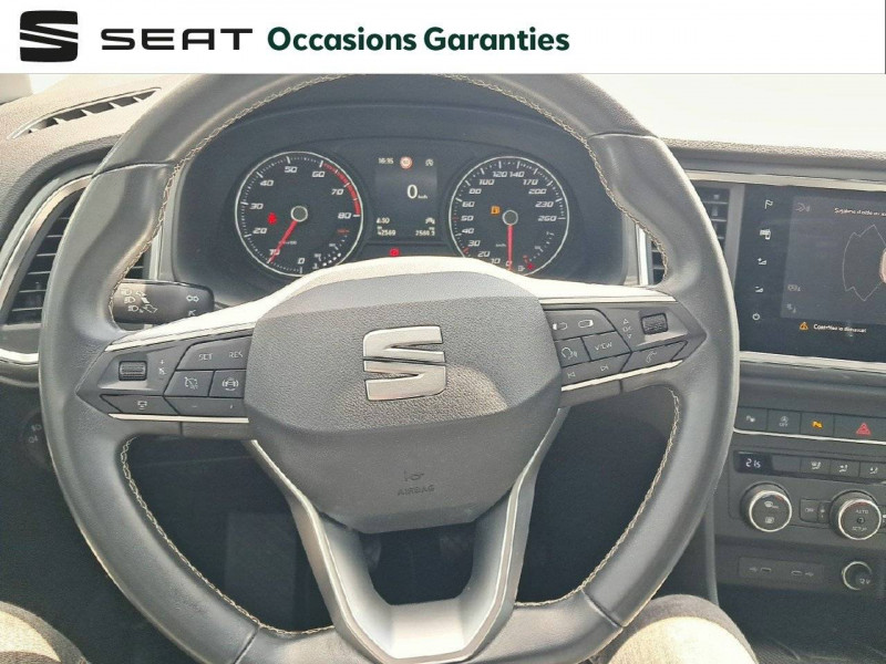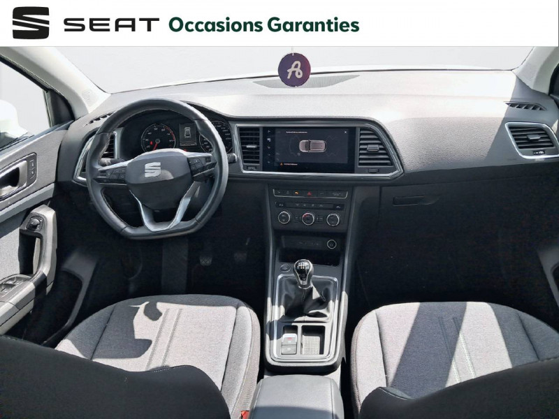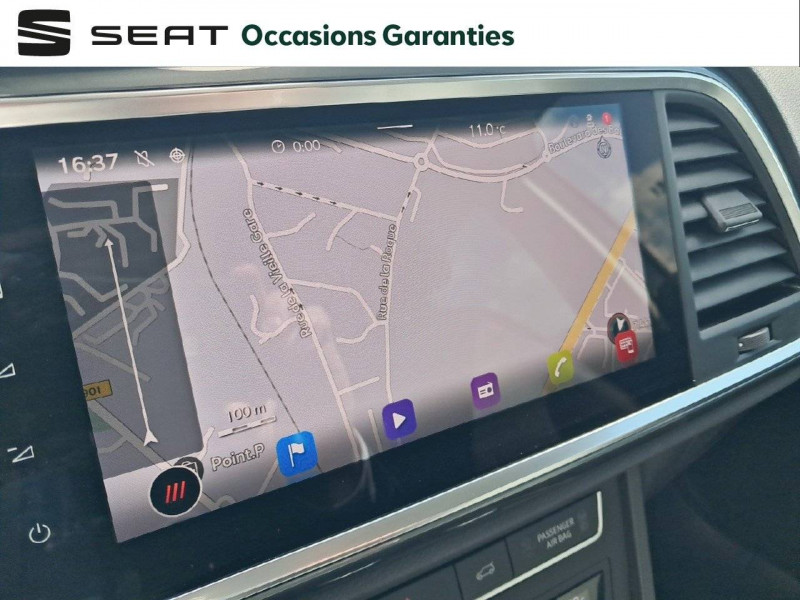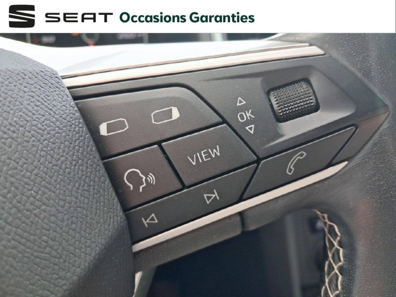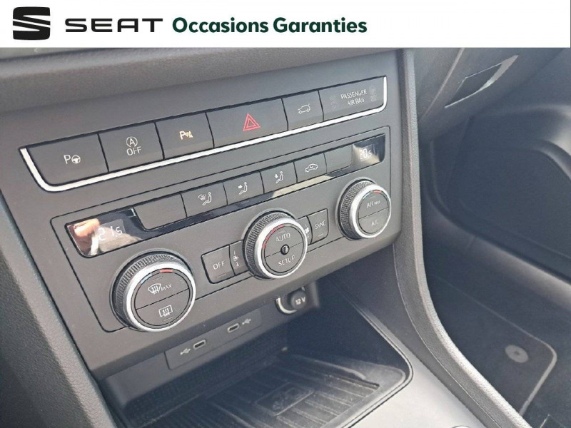 Activation automatique des feux de détresse lors d'un freinage d'urgence / Climatisation automatique bi-zone Climatronic avec système Pure Air / Pack Drive Assist M Light / Pommeau de levier de vitesse cuir synthétique / Rétroviseurs extérieurs dégivrants et rabattables électriquement avec abaissement automatique du rétroviseur passager en marche AR / Système "Start-Stop" automatique et dispositif de récupération de l'énergie de freinage / Welcome lights (Éclairage LED projetant "Hola!" au sol) / 2 Fixations Isofix + Top tether intégrées aux sièges AR pour ancrage de sièges enfant / 2 prises USB-C éclairées / 2 prises USB-C éclairées AR avec filet de rangement pour téléphone mobile / ABS électronique (système antiblocage des roues) avec alerte de pression des pneumatiques / Accoudoir central à l'AV avec compartiment de rangement / Affichage de la périodicité d'entretien / Airbag de genoux (côté conducteur) / Airbags frontaux conducteur et passager (passager déconnectable) / Antenne de toit type "requin" / Anti-patinage électronique (ASR), assistance au freinage d'urgence (EBA) / Aumônières de rangement au dos sièges AV / Banquette AR rabattable en 2 parties asymétriques / Connectivity Box avec chargeur à induction / Console centrale, volant et aérations avec applications noires satinées / Contour de calandre chromé / Contre-portes en textile Olot / Couvre-coffre rabattable / Différentiel XDS / Frein à main électrique / Front Assist : système de surveillance périmétrique avec fonction de freinage de secours en ville / Full Link (MirrorLink + Android Auto + Apple CarPlay) / Hayon de coffre à ouverture/fermeture électrique / Inserts de pare-chocs AV/AR chromés / Keyless Access (accès et démarrage mains-libres) / Lampes de lecture AV/AR / Oeilletons de fixation (4) dans le coffre / Ordinateur de bord 3,5'' avec affichage de la température extérieure / Pare-chocs couleur carrosserie / Pneumatiques à ultra-basse résistance au roulement / Poignées de portes couleur carrosserie / Porte-documents sous le siège conducteur / Protections de pare-chocs AV et AR noires / Protections de passages de roues noires / Rails de toit et entourages des vitres latérales chromés / Réglage en hauteur et réglage lombaire du siège conducteur / Rétroviseur intérieur électrochrome / Rétroviseurs extérieurs couleur carrosserie / Rétroviseurs réglables électriquement avec rappels latéraux de clignotant intégrés / SEAT Connect Media & Internet / Siège passager réglable en hauteur manuellement avec réglage lombaire / Système audio à 4 haut-parleurs avec prise USB-C / Tableau de bord noir Titane avec insert gris ATOM / Tapis de sol textile AV/AR