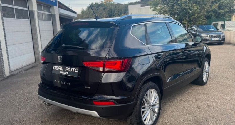 Seat Ateca 2.0 TDI 150ch Start&Stop Xcellence 4Drive, (S.U.V.), Noir Magique Métal, 8cv, 5 portes, mise en circulation le 16-10-2017, garantie 6 mois. 5 places, longueur : 4,36 mètres, poids en charge 2010 Kg, boîte de vitesse : manuelle OPTIONS ET EQUIPEMENTS : Audio - Télécommunications - 6 Haut parleurs - Ecran LCD - Ecran tactile - Fonction MP3 - GPS Cartographique - Interface Media - Kit mains-libres Bluetooth - Lecteur CD - Lecteur carte SD - Prise USB - Prise auxiliaire de connexion audio - Radio - Radio numérique DAB Conduite - Aide au démarrage en côte - Arrêt et redémarrage auto. du moteur - Capteur de luminosité - Capteur de pluie - Commande du comportement dynamique - Guidage pour manoeuvre de stationnement - Limiteur de vitesse - Régulateur de vitesse - Système d'accès sans clé - Système de récupération énergie freinage Extérieur - Boucliers AV et AR couleur caisse - Caméra de recul - Ceinture de vitrage chromée - Echappement à double sortie - Eclairage au sol - Eclairage statique d'intersection - Feux arrière à LED - Feux de freinage d'urgence - Feux de jour à LED - Filtre à particules - Hayon arrière - Jantes Alu - Phares avant LED - Poignées ton carrosserie - Radar de stationnement AR - Répétiteurs de clignotant dans rétro ext - Rétroviseurs dégivrants - Rétroviseurs rabattables électriquement - Rétroviseurs électriques - Sortie d'échappement chromée Intérieur - Accoudoir arrière - Accoudoir central AV avec rangement - Banquette 1/3-2/3 - Banquette AR rabattable - Boite à gants fermée - Clim automatique bi-zones - Compte tours - Eclairage d'ambiance - Ecran multifonction couleur - Filtre à Pollen - Lampe de coffre - Lampes de lecture à l'arrière - Lampes de lecture à l'avant - Lunette arrière surteintée - Miroir de courtoisie conducteur éclairé - Miroir de courtoisie passager éclairé - Ordinateur de bord - Ouverture des vitres séquentielle - Poches d'aumonières - Pommeau de levier vitesse en cuir - Porte-gobelets arrière - Porte-gobelets avant - Prise 12V - Rétroviseur intérieur électrochrome - Sièges avant chauffants - Siège conducteur avec réglage lombaire - Siège conducteur réglable en hauteur - Siège passager avec réglage lombaire - Siège passager réglable en hauteur - Tablette cache bagages - Température extérieure - Verrouillage centralisé à distance - Vitres arrière surteintées - Vitres arrière électriques - Vitres avant électriques - Volant cuir - Volant multifonction - Volant réglable en profondeur et hauteur - Volant sport Sécurité - ABS - Aide au freinage d'urgence - Airbag conducteur - Airbag genoux - Airbag passager - Airbag passager déconnectable - Airbags latéraux avant - Airbags rideaux - Airbags rideaux AR - Antidémarrage électronique - Antipatinage - Détecteur de sous-gonflage - EBD - ESP - Freinage automatique d'urgence - Phares antibrouillard LED - Préparation Isofix - Système de détection de somnolence - Troisième ceinture de sécurité - Témoin de bouclage ceinture conducteur - Témoin de bouclage des ceintures AV Autres équipements et informations : - Noir Magique Métal Ideal Auto Varces 34 rue du Peuil 38760 Varces