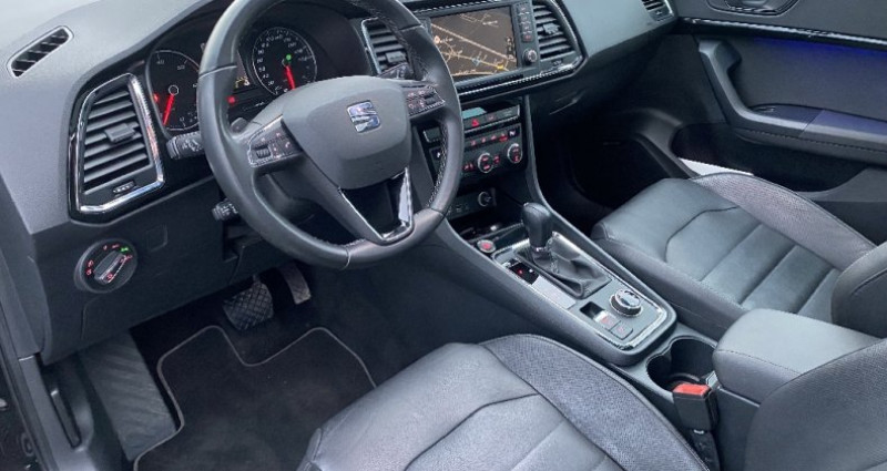 Cylindrée : 1968 cm3 Nb. Vitesse : 7 - Sièges AV chauffants - Sellerie cuir - Seat sound - ABS - Accoudoir central - Aide au démarrage en côte (Hill Hold Control) - Airbags - Anti-patinage électronique (ASR), assistance au freinage d'urgence (EBA) - Banquette AR rabattable en 2 parties asymétriques - Climatisation automatique bi-zone assager - Détecteur de fatigue - Détecteur de pluie et luminosité - Direction assistée - Feux de jour à LED - Frein à main électrique - Front Assist : système de surveillance périmétrique avec fonction de freinage de secours en ville - Full Link (MirrorLink Android Auto Apple CarPlay) - GPS Europe avec écran tactile 8' - Grand toit ouvrant panoramique - Hayon électrique - Jantes alu - Keyless Access - Limiteur de vitesse - Molette Driving Experience avec SEAT Drive Profile et direction progressive - Ordinateur de bord - Prise 12V - Projecteurs Full LED - Radars de stationnement - Rails de toit - Régulateur de vitesse - Rétroviseurs extérieurs dégivrants, réglables et rabattables électriquement - Siège conducteur réglable en hauteur - Système 'Start-Stop' - Système d'aide au stationnement 'Top view camera' - Top view camera 360º - Verrouillage centralisé à distance