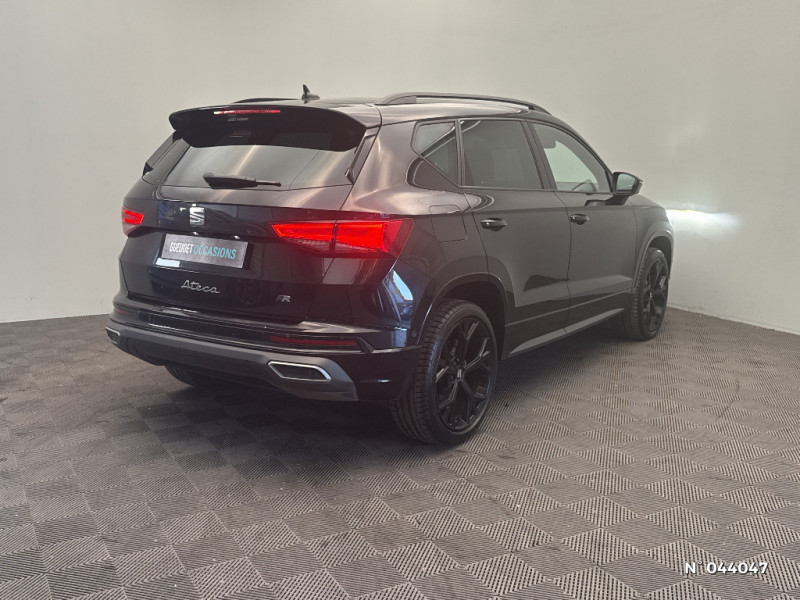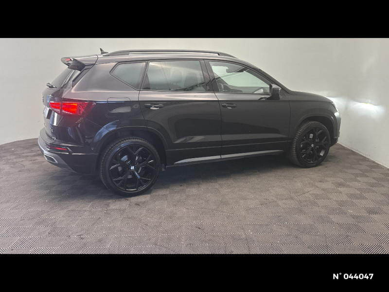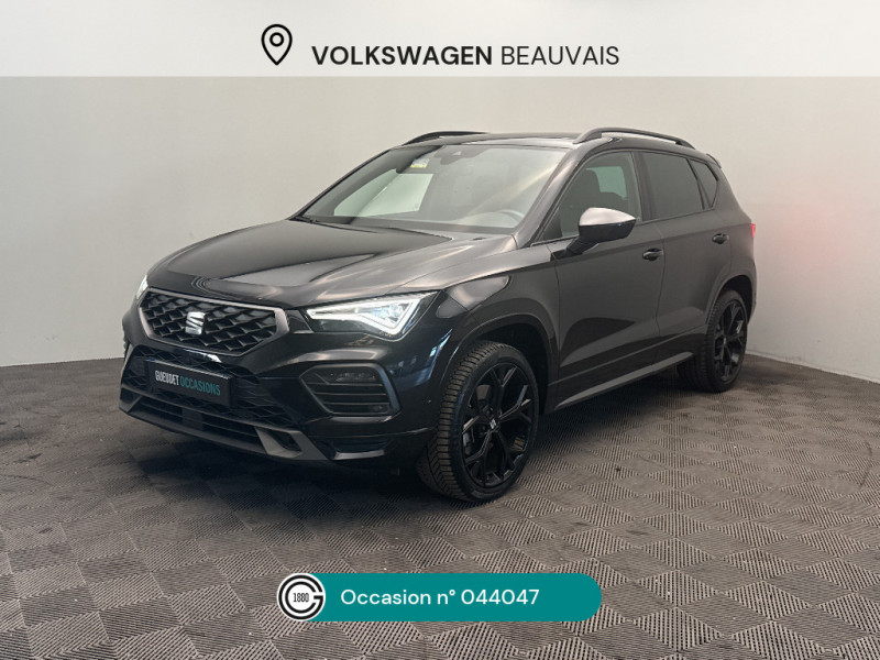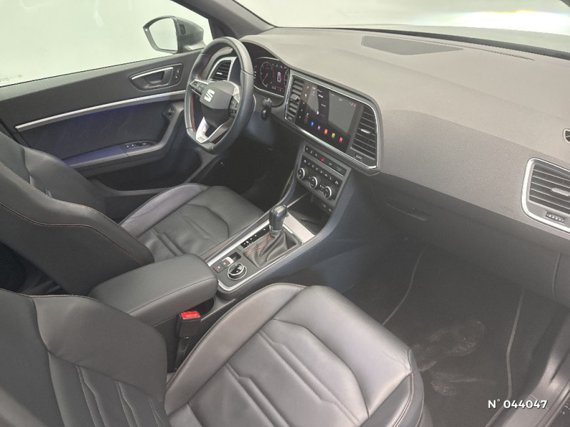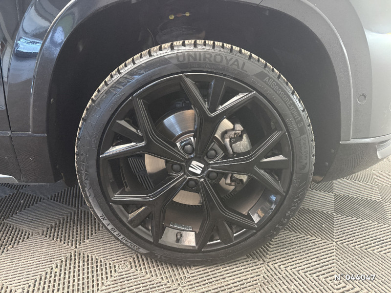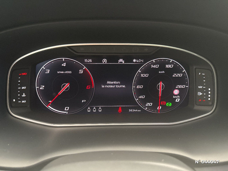 Rails de toit et entourages de vitres Noirs / Régulation adaptative du chassis DCC / Sellerie en suédine noire / similicuir noir avec surpiqûres rouges / Seuils de porte AV FR en aluminium rétro-éclairés / Sièges conducteur et passager réglables en hauteur avec réglage lombaire / Spots de lecture AV/AR / Système d'aide active au stationnement Park Assist / Système "Start-Stop" automatique et dispositif de récupération de l'énergie de freinage / Tableau de bord noir Titan avec insert Gris Acier / Top view camera 360º / Rétroviseur intérieur électrochrome / Rétroviseurs extérieurs dégivrants et rabattables électriquement avec abaissement automatique du rétroviseur passager en marche AR / Front Assist : système de surveillance périmétrique avec fonction de freinage de secours en ville / Rétroviseurs réglables électriquement avec rappels latéraux de clignotant intégrés / SEAT Connect Media & Internet / Volant sport multifonctions à méplat en cuir perforé avec surpiqûres rouges et logo FR / Volant Sport multifonctions en cuir à méplat avec palettes / Welcome lights (à?clairage LED projetant "Hola!" au sol) / Full Link sans fil (Android Auto + Apple CarPlay) / 2 Fixations Isofix + Top tether intégrées aux sièges AR pour ancrage de sièges enfant / 4 prises USB-C éclairées / ABS électronique (système antiblocage des roues) avec alerte de pression des pneumatiques / Accoudoir central AV réglable en hauteur et profondeur avec compartiment de rangement / Activation automatique des feux de détresse lors d'un freinage d'urgence / Airbag de genoux (côté conducteur) / Airbags frontaux conducteur et passager (passager déconnectable) / Aumônières de rangement au dos sièges AV / Banquette AR rabattable 2/3-1/3 avec accoudoir et trappe à skis / Beats Audio : système audio premium à 9HP + 1 caisson de basse avec amplificateur 340W / Ciel de pavillon noir / Clignotants AR à défilement / Climatisation automatique bi-zone Climatronic avec système Pure Air / Connectivity Box avec chargeur à induction / Contour de calandre Gris Cosmique / Contre-portes en matériau synthétique noir Titane / Coques de rétroviseurs Gris Cosmique / Couvre-coffre rabattable / Détection de fatigue / Différentiel électronique XDS / Digital Cockpit Pro 10" / Eclairage d'ambiance intérieur "Advanced Ambient Light" / Frein à main électrique / Garantie 2 ans, kilométrage illimité / Hayon électrique mains-libres avec Virtual Pedal / Inserts de pare-chocs AV/AR chromés / Jantes alliage 19" Aero Machined, pneus 235/40 R19 96Y / Keyless Access (accès et démarrage mains-libres) avec 2 télécommandes / Kit anti-crevaison / Molette Driving Experience avec SEAT Drive Profile et direction progressive / Pack Design FR Avec sabot de protection AV et diffuseur AR Gris Cosmique / Pack Drive Assist M / Passages de roues couleur carrosserie / Pédalier Sport en aluminium / Poignées de portes couleur carrosserie / Pommeau de levier de vitesse cuir véritable / Porte-documents sous le siège conducteur