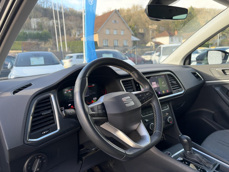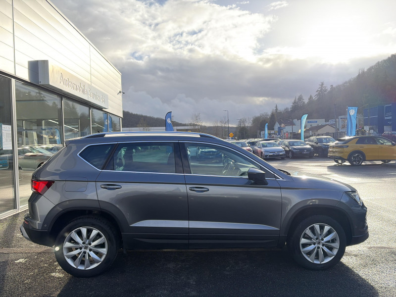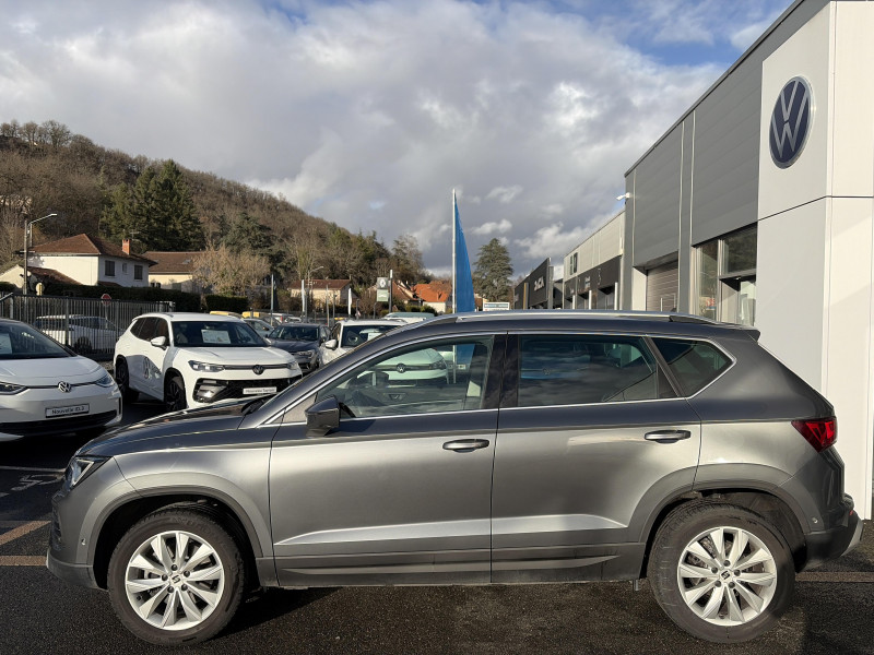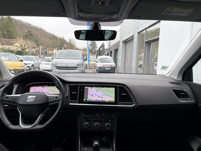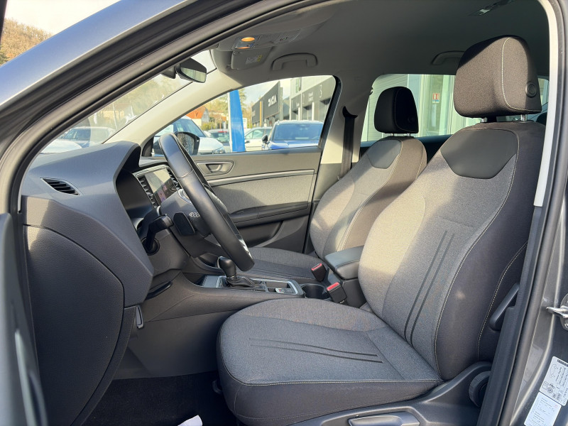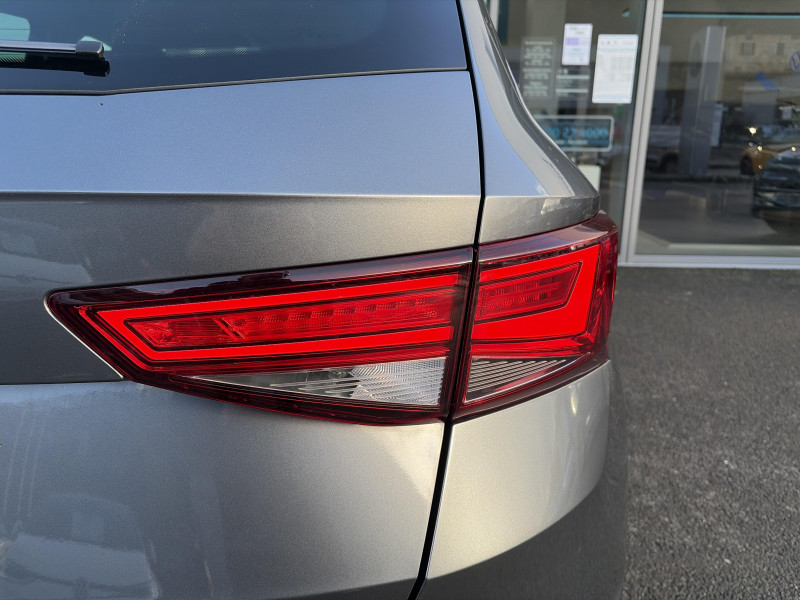 Activation automatique des feux de détresse lors d'un freinage d'urgence / Climatisation automatique bi-zone Climatronic avec système Pure Air / Jantes alliage 17" Dynamic, pneus 215/55 R17 94V / Pommeau de levier de vitesse cuir véritable / Rétroviseurs extérieurs dégivrants et rabattables électriquement avec abaissement automatique du rétroviseur passager en marche AR / Système "Start-Stop" automatique et dispositif de récupération de l'énergie de freinage / Volant Sport multifonctions en cuir à méplat avec palettes / Welcome lights (Éclairage LED projetant "Hola!" au sol) / 2 Fixations Isofix + Top tether intégrées aux sièges AR pour ancrage de sièges enfant / 4 prises USB-C éclairées / ABS électronique (système antiblocage des roues) avec alerte de pression des pneumatiques / Accoudoir central AV réglable en hauteur et profondeur avec compartiment de rangement / Airbag de genoux (côté conducteur) / Airbags frontaux conducteur et passager (passager déconnectable) / Aumônières de rangement au dos sièges AV / Banquette AR rabattable 2/3-1/3 avec accoudoir et trappe à skis / Contour de calandre chromé / Contre-portes en textile Olot / Couvre-coffre rabattable / Différentiel électronique XDS / Digital Cockpit 8" / Frein à main électrique / Front Assist : système de surveillance périmétrique avec fonction de freinage de secours en ville / Full Link sans fil (Android Auto + Apple CarPlay) / Inserts de pare-chocs AV/AR chromés / Keyless Access (accès et démarrage mains-libres) avec 2 télécommandes / Kit anti-crevaison / Poignées de portes couleur carrosserie / Porte-documents sous le siège conducteur / Protections de passages de roues noires / Rails de toit et entourages des vitres latérales chromés / Rétroviseur intérieur électrochrome / Rétroviseurs extérieurs couleur carrosserie / Rétroviseurs réglables électriquement avec rappels latéraux de clignotant intégrés / SEAT Connect Media & Internet / Sièges conducteur et passager réglables en hauteur avec réglage lombaire / Spots de lecture AV/AR / Tableau de bord noir Titane avec insert Gris Atome