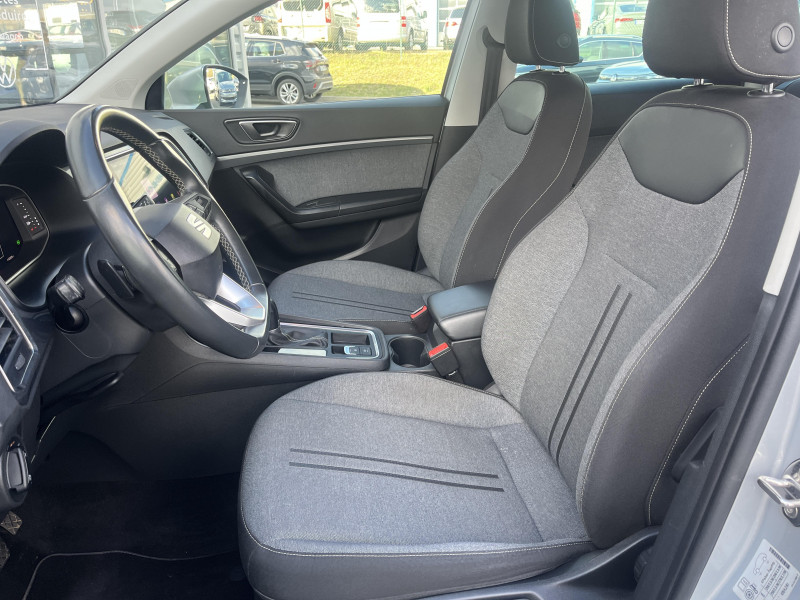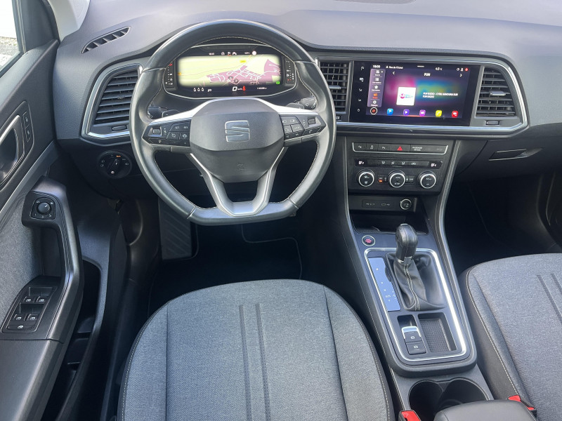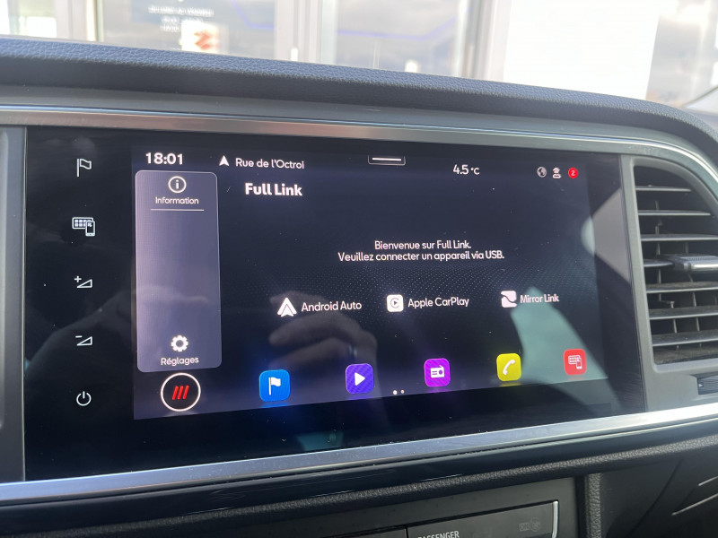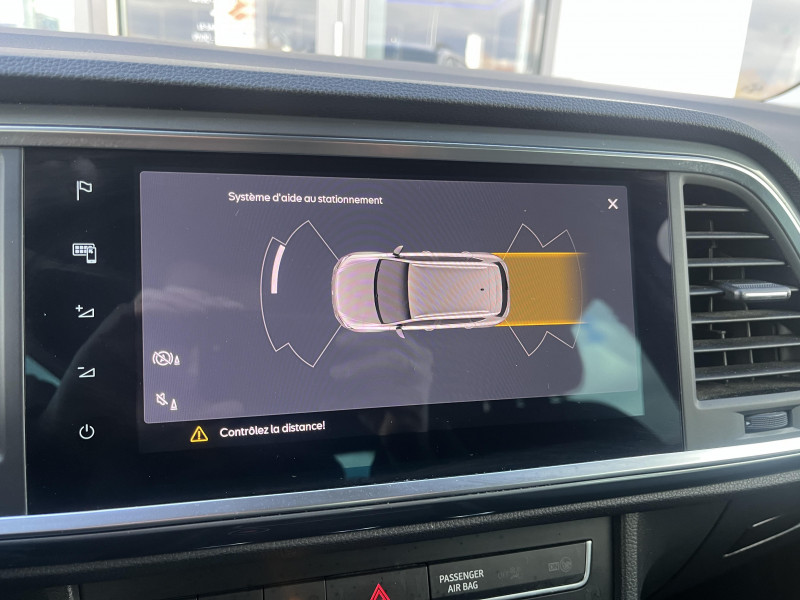 Activation automatique des feux de détresse lors d'un freinage d'urgence / Climatisation automatique bi-zone Climatronic avec système Pure Air / Pommeau de levier de vitesse cuir véritable / Rétroviseurs extérieurs dégivrants et rabattables électriquement avec abaissement automatique du rétroviseur passager en marche AR / Système "Start-Stop" automatique et dispositif de récupération de l'énergie de freinage / Welcome lights (Éclairage LED projetant "Hola!" au sol) / 2 Fixations Isofix + Top tether intégrées aux sièges AR pour ancrage de sièges enfant / 2 prises USB-C éclairées / 2 prises USB-C éclairées AR avec filet de rangement pour téléphone mobile / ABS électronique (système antiblocage des roues) avec alerte de pression des pneumatiques / Accoudoir central à l'AV avec compartiment de rangement / Affichage de la périodicité d'entretien / Airbag de genoux (côté conducteur) / Airbags frontaux conducteur et passager (passager déconnectable) / Antenne de toit type "requin" / Anti-patinage électronique (ASR), assistance au freinage d'urgence (EBA) / Aumônières de rangement au dos sièges AV / Banquette AR rabattable en 2 parties asymétriques / Console centrale, volant et aérations avec applications noires satinées / Contour de calandre chromé / Contre-portes en textile Olot / Couvre-coffre rabattable / Différentiel XDS / Frein à main électrique / Front Assist : système de surveillance périmétrique avec fonction de freinage de secours en ville / Full Link (MirrorLink + Android Auto + Apple CarPlay) / Inserts de pare-chocs AV/AR chromés / Keyless Access (accès et démarrage mains-libres) / Kit anti-crevaison / Lampes de lecture AV/AR / Molette Driving Experience avec SEAT Drive Profile et direction progressive / Oeilletons de fixation (4) dans le coffre / Ordinateur de bord 3,5'' avec affichage de la température extérieure / Pare-chocs couleur carrosserie / Pneumatiques à ultra-basse résistance au roulement / Porte-documents sous le siège conducteur / Rails de toit et entourages des vitres latérales chromés / Réglage en hauteur et réglage lombaire du siège conducteur / Rétroviseur intérieur électrochrome / Rétroviseurs extérieurs et poignées de portes couleur carrosserie / Rétroviseurs réglables électriquement avec rappels latéraux de clignotant intégrés / SEAT Connect Media & Internet / Sièges conducteur et passager réglables manuellement en hauteur et réglage des lombaires / Spots de lecture AV / Système audio à 4 haut-parleurs avec prise USB-C / Système d'info-divertissement MediaSystem+ avec écran tactile 8,25'' / Tableau de bord noir Titane avec insert gris ATOM / Tapis de sol textile AV/AR / Volant multifonctions à méplat avec palettes