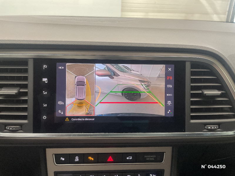 Système "Start-Stop" automatique et dispositif de récupération de l'énergie de freinage / Tableau de bord noir Titan avec insert bois clair / Top view camera 360º / Volant Sport multifonctions en cuir à méplat avec palettes / Welcome lights (Éclairage LED projetant "Hola!" au sol) / 2 Fixations Isofix + Top tether intégrées aux sièges AR pour ancrage de sièges enfant / 4 prises USB-C éclairées / ABS électronique (système antiblocage des roues) avec alerte de pression des pneumatiques / Accoudoir central AV réglable en hauteur et profondeur avec compartiment de rangement / Activation automatique des feux de détresse lors d'un freinage d'urgence / Airbag de genoux (côté conducteur) / Airbags frontaux conducteur et passager (passager déconnectable) / Aumônières de rangement au dos sièges AV / Banquette AR rabattable 2/3-1/3 avec accoudoir et trappe à skis / Calandre spécifique avec inserts chromés / Clignotants AR à défilement / Climatisation automatique bi-zone Climatronic avec système Pure Air / Connectivity Box avec chargeur à induction / Contour de calandre chromé / Contre-portes en matériau synthétique noir Titane / Couvre-coffre rabattable / Détection de fatigue / Différentiel électronique XDS / Digital Cockpit Pro 10" / Eclairage d'ambiance intérieur "Advanced Ambient Light" / Kit anti-crevaison / Molette Driving Experience avec SEAT Drive Profile et direction progressive / Pack Design Xperience / Pack Drive Assist M / Poignées de portes couleur carrosserie / Pommeau de levier de vitesse cuir véritable / Porte-documents sous le siège conducteur / Protections de passages de roues noires / Rails de toit et entourages des vitres latérales chromés / Rétroviseur intérieur électrochrome / Rétroviseurs extérieurs couleur carrosserie / Rétroviseurs extérieurs dégivrants et rabattables électriquement avec abaissement automatique du rétroviseur passager en marche AR / Rétroviseurs réglables électriquement avec rappels latéraux de clignotant intégrés / Frein à main électrique / Front Assist : système de surveillance périmétrique avec fonction de freinage de secours en ville / Full Link sans fil (Android Auto + Apple CarPlay) / Garantie 2 ans, kilométrage illimité / Hayon électrique mains-libres avec Virtual Pedal / Inserts de pare-chocs AV/AR chromés / Jantes alliage 18" Performance, pneus 215/50 R18 92W / Keyless Access (accès et démarrage mains-libres) avec 2 télécommandes / SEAT Connect Media & Internet / Sellerie en suédine noire / similicuir noir avec surpiqûres grises / Seuils de porte AV Xperience en aluminium rétro-éclairés / Sièges conducteur et passager réglables en hauteur avec réglage lombaire / Spots de lecture AV/AR / Système d'aide active au stationnement Park Assist