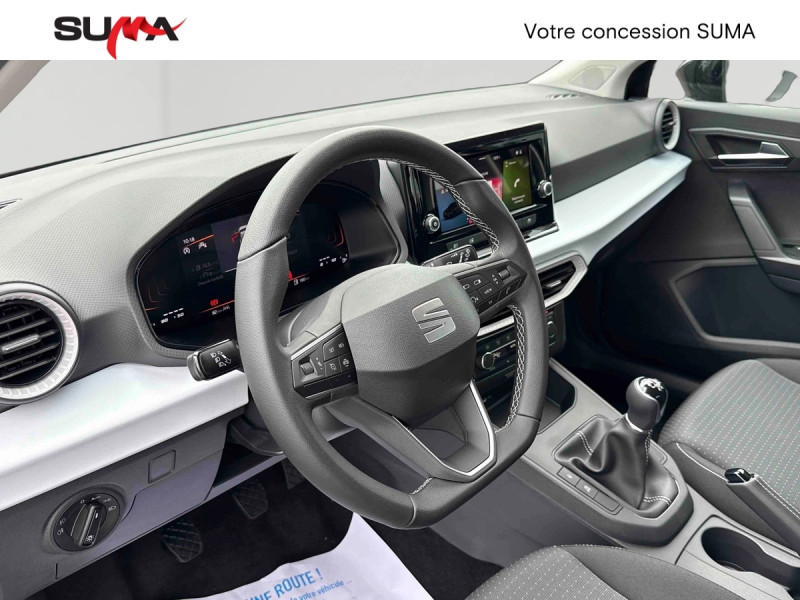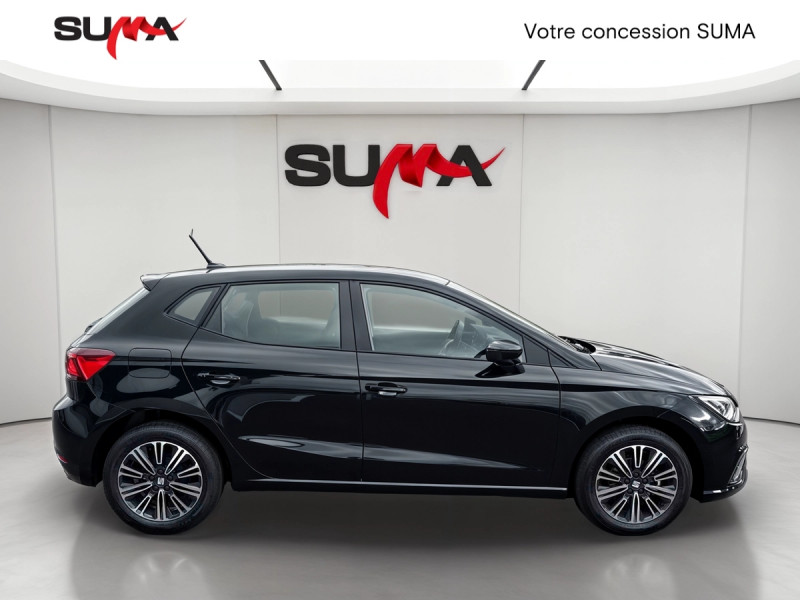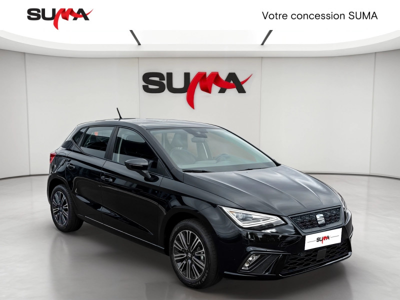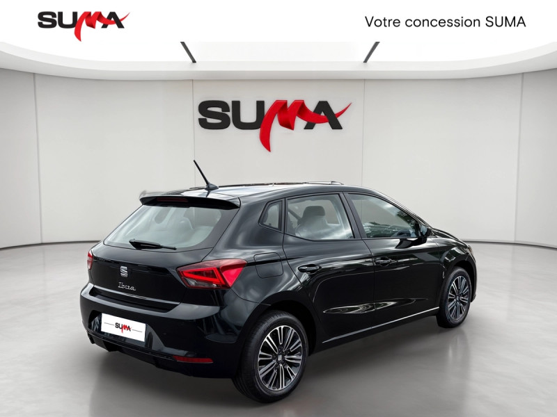 NOIR MINUIT / PACK VISION + / JANTE ALLIAGE 16 URBAN DESIGN / PACK RANGEMENT / EXTENSION DE GARANTIE 2 ANS / 80'000 KM / FULL LINK SANS FIL / SELLERIE TEXTILE GRISE COMO / COPA / Aide au démarrage en côte (Hill Hold Control) / Eclairage d'ambiance intérieur à LED blanc au niveau de la console centrale et du plancher AV / Eclairage de plaque d'immatriculation à LED / Lane Assist - aide au maintien dans la voie / Rétroviseur intérieur jour/nuit automatique / Pack Vision Plus Caméra de recul avec aide au stationnement AV et AR / Projecteurs Full LED avec signature lumineuse triangulaire / Volant sport multifonctions à méplat en cuir / 2 Fixations ISOFIX + Top tether intégrées aux sièges AR / 2 lampes de lecture AV / 3 appuie-têtes AR / latéraux et rideaux (passager déconnectable) / Alerte de non-bouclage des ceintures AV/AR / Anti-blocage des roues (ABS) et contrôle de stabilité électronique (ESC) / Anti-patinage électronique (ASR) / Boîte de vitesses manuelle à 5 rapports / Ceintures de sécurité à 3 points / Connectivité 2x USB-C et Bluetooth / Couvre-coffre rabattable / Digital Cockpit 8 / Détection de fatigue et somnolence / Détection de sous-gonflage des pneumatiques / Eclairage d'accompagnement / Entourages d'aérateurs Gris City / Front Assist avec détection des piétons et des cyclistes / Full Link sans fil (Android Auto + Apple CarPlay) / Kit anti-crevaison / Logos SEAT satinés AV/AR et sur le volant / Pare-chocs couleur carrosserie / Pare-soleil avec miroir de courtoisie / avec porte carte côté conducteur / Poignées de portes couleur carrosserie / Rétroviseurs extérieurs couleur carrosserie / Rétroviseurs extérieurs réglables électriquement intégrant les répétiteurs de clignotants latéraux / SEAT Connect / Signature Ibiza manuscrite sur le hayon / Système d'info-divertissement MediaSystem+ avec écran tactile HD 8 / 25'' / Tapis de sol textile AV/AR / TCS (contrôle de la traction)
