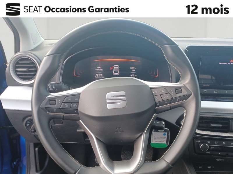 Aide au démarrage en côte (Hill Hold Control) / Eclairage d'ambiance intérieur à LED blanc au niveau de la console centrale et du plancher AV / Eclairage de plaque d'immatriculation à LED / Feux AR à LED avec signature lumineuse triangulaire / Lane Assist - aide au maintien dans la voie / Rétroviseur intérieur jour/nuit automatique / Pack Vision Plus / Projecteurs Full LED avec signature lumineuse triangulaire / Volant sport multifonctions à méplat en cuir / 2 Fixations ISOFIX + Top tether intégrées aux sièges AR / 2 lampes de lecture AV / 3 appuie-têtes AR / latéraux et rideaux (passager déconnectable) / Alerte de non-bouclage des ceintures AV/AR / Anti-blocage des roues (ABS) et contrôle de stabilité électronique (ESC) / Anti-patinage électronique (ASR) / Ceintures de sécurité à 3 points / Connectivité 2x USB-C et Bluetooth / Couvre-coffre rabattable / Digital Cockpit 8 / Détection de fatigue et somnolence / Détection de sous-gonflage des pneumatiques / Eclairage d'accompagnement / Entourages d'aérateurs Gris City / Front Assist avec détection des piétons et des cyclistes / Full Link sans fil (Android Auto + Apple CarPlay) / Kit anti-crevaison / Logos SEAT satinés AV/AR et sur le volant / Pare-chocs couleur carrosserie / Pare-soleil avec miroir de courtoisie / avec porte carte côté conducteur / Poignées de portes couleur carrosserie / Rétroviseurs extérieurs couleur carrosserie / Rétroviseurs extérieurs réglables électriquement intégrant les répétiteurs de clignotants latéraux / SEAT Connect / Signature Ibiza manuscrite sur le hayon / Système d'info-divertissement MediaSystem+ avec écran tactile 8 / 25'' / Tapis de sol textile AV/AR