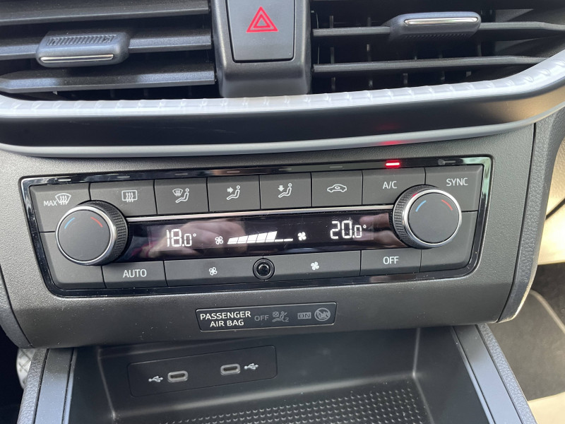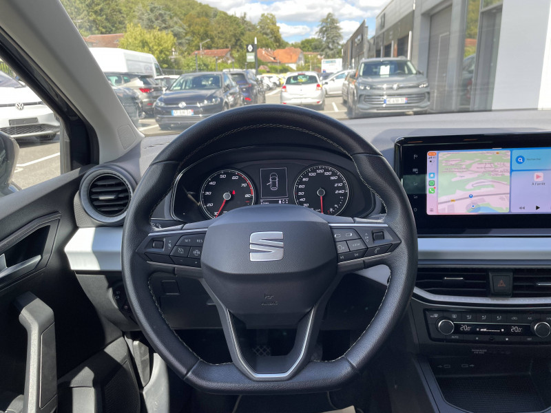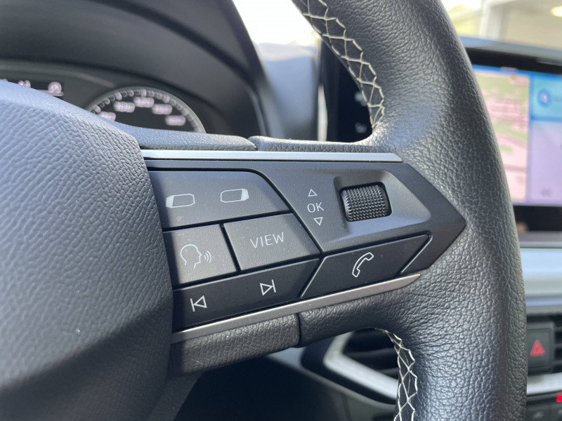 Allumage automatique des projecteurs avec fonction "Coming Home" / Climatisation automatique Climatronic bi-zone avec filtre Air Care / Jantes alliage 16" "DESIGN MACHINED" avec pneus 195/55 R16 91V XL / Levier de vitesse DSG en cuir,pommeau BVM en cuir végétal / Système de navigation avec écran tactile 9.2" / Système ?Start-Stop' automatique et dispositif de récupération de l'énergie de freinage / Volant multifonctions et levier de vitesse en cuir / 2 prises USB-C , Bluetooth / 6 HP / ABS électronique (système antiblocage des roues) / Airbags frontaux conducteur et passager (passager déconnectable) / Alerte de non-bouclage des ceintures AV/AR / Commande vocale / Couvre-coffre rabattable / Direction à assistance électromécanique / Entourages d'aérateurs Gris City / Fixations ISOFIX avec Top Tether intégrées aux sièges AR pour ancrage des sièges enfant / Front assist avec freinage d'urgence et détection de piétons / Garantie 2 ans, kilométrage illimité / Kit anti-crevaison / Lampes de lecture AV / Lane Assist - Correcteur de trajectoire / Lave-glace AR à balayage intermittent / Pare-soleil avec porte-carte côté conducteur / Phares antibrouillard AV avec fonction "Cornering light" / Poignées de portes couleur carrosserie / Rétroviseurs extérieurs couleur carrosserie / SEAT Connect / Sièges AV Confort / Système d'info-divertissement MediaSystem+ avec écran tactile 8,25'' / Tableau de bord avec insert Blanc Mat / Tapis de sol / Technologie Full Link (MirrorLink + Android Auto + Apple CarPlay)