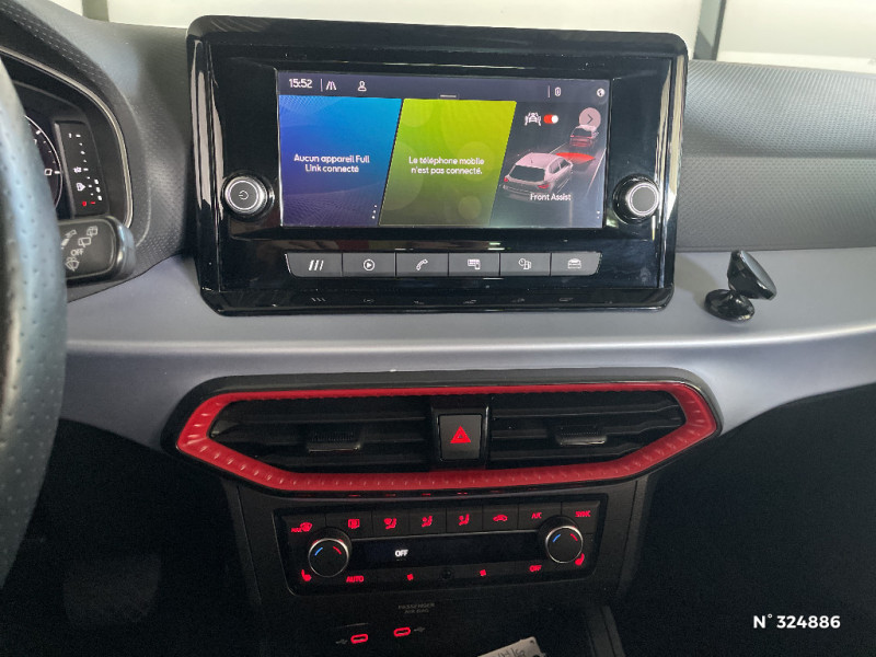 Seat Drive Profile 4 modes de conduite / Projecteurs antibrouillard AV avec éclairage d'intersection / Rétroviseurs extérieurs réglables électriquement intégrant les répétiteurs de clignotants latéraux / Airbags frontaux, latéraux et rideaux AV (passager déconnectable) / Lane Assist - Correcteur de trajectoire / Jantes alliage 17" FR DYNAMIC avec pneus 215/45 R17 914W XL / Système de navigation avec écran tactile 9,2" / Entourages d'aérateurs Rouge Laser / Pack Vision+ / 2 prises USB-C , Bluetooth / Lane Assist - aide au maintien dans la voie / Ordinateur de bord avec affichage de la température extérieure / Allumage automatique des projecteurs avec fonction 'Follow-me-home' / Projecteurs Full LED avec feux AR LED et signature lumineuse triangulaire / 2 Fixations ISOFIX + Top tether intégrées aux sièges AR / 2 lampes de lecture AV / Digital Cockpit Pro 10" / Sellerie textile bleue LE MANS bi-matière avec surpiqûres rouges, planche de bord moussée et contre-portes AV avec inserts Gris Acier / Volant sport multifonctions à méplat en cuir Nappa perforé avec surpiqûres rouges et logo FR / Entourages d'aérateurs centraux et latéraux gris satinés avec inserts Rouge Laser / Connectivité 2x USB-C et Bluetooth / Couvre-coffre rabattable / Full Link sans fil (Android Auto + Apple CarPlay) / Connectivity Box avec chargeur à induction / Pommeau de levier de vitesse cuir véritable / Eclairage d'ambiance intérieur à LED / SEAT Drive Profile (4 modes de conduite) Eco, Confort, Sport et Individual / Pare-chocs couleur carrosserie / Rétroviseurs extérieurs intégrant les répétiteurs de clignotants latéraux / ABS électronique (système antiblocage des roues) / Rétroviseur intérieur jour/nuit automatique / Front assist avec freinage d'urgence et détection de piétons / Coques de rétroviseurs Noir Piano / Peinture vernie Rouge Passion / Pack Business Nav / Pack Vision Plus / 4 vitres électriques à impulsion avec sécurité enfant / Kit anti-crevaison / Ciel de pavillon Noir / Système d'appel d'urgence eCall / Pack Rangement / Alerte de non-bouclage des ceintures AV/AR / Contre-portes AV en finition textile / Double-sortie d'échappement chromée stylisée / Poignées de portes couleur carrosserie / Pare-soleil avec porte-carte côté conducteur / Climatisation automatique bi-zone Climatronic avec système Pure Air / Allumage automatique des projecteurs avec éclairage d'accompagnement / Tapis de sol textile AV/AR / Rétroviseurs extérieurs couleur carrosserie / Garantie 2 ans, kilométrage illimité / Logos "SEAT" satinés AV/AR et sur le volant / ESC (Contrôle de stabilitéélectronique) / 4 HP / Levier de frein à main en cuir synthétique / Calandre spécifique Noir Piano avec contour chromé / Détection de sous-gonflage des pneumatiques électronique / Keyless Access : accès et démarrage sans clé / Airbags frontaux conducteur et passager (passager déconnectable) / Signature "Ibiza" manuscrite sur le hayon / Jantes alliage 17" FR DYNAMIC, pneus 215/45 R17 91W XL / Front Assist avec détection des piétons et des cyclistes
