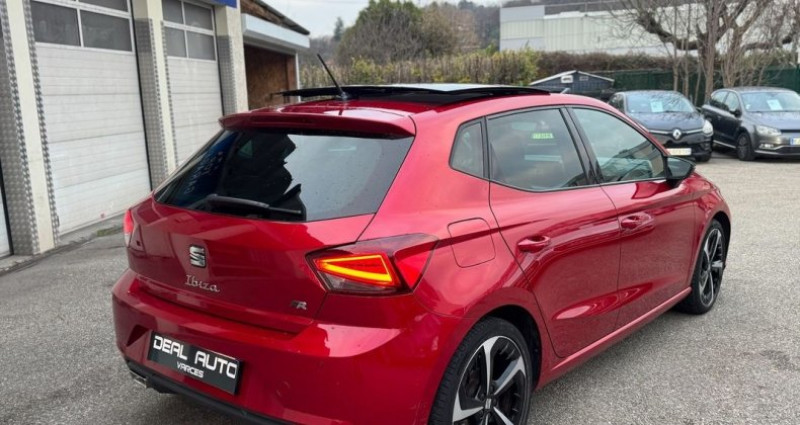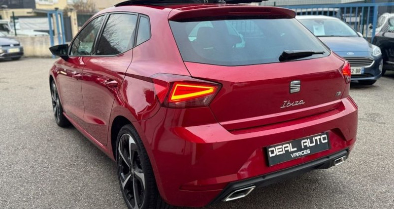 Seat Ibiza 1.0 TSI 110ch FR, (Berline), Rouge Désir métal, 6cv, 5 portes, mise en circulation le 28-04-2023, garantie 12 mois. 5 places, longueur : 4,06 mètres, poids en charge 1690 Kg, boîte de vitesse : manuelle OPTIONS ET EQUIPEMENTS : Audio - Télécommunications - 6 Haut parleurs - Appel d'Assistance Localisé - Appel d'Urgence Localisé - Commandes du système audio au volant - Commandes vocales - Ecran tactile - Fonction MP3 - GPS Cartographique - Interface Media - Kit mains-libres Bluetooth - Lecteur carte SD - Prise USB - Prise auxiliaire de connexion audio - Pré-équipement Kit Bluetooth - Pré-équipement Radio - Radio - Radio numérique DAB - Services connectés Conduite - Aide au démarrage en côte - Arrêt et redémarrage auto. du moteur - Capteur de luminosité - Capteur de pluie - Commande Mode ECO - Commande du comportement dynamique - Follow me home - Limiteur de vitesse - Régulateur de vitesse - Suspensions Sport Extérieur - Becquet arrière - Boucliers AV et AR couleur caisse - Ceinture de vitrage chromée - Echappement à double sortie - Eclairage statique d'intersection - Essuie-glace arrière - Feux arrière à LED - Feux de jour à LED - Filtre à particules - JA 18 BLACK MACHINED - Jantes Alu - Phares avant LED - Poignées ton carrosserie - Radar de stationnement AR - Rétroviseurs dégivrants - Rétroviseurs rabattables électriquement - Rétroviseurs électriques - Vitres arrière et lunette AR surteintées - Toit ouvrant panoramique Intérieur - Accoudoir central AV avec rangement - Appui-tête conducteur réglable hauteur - Appui-tête passager réglable en hauteur - Bacs de portes arrière - Bacs de portes avant - Banquette 1/3-2/3 - Banquette AR rabattable - Banquette arrière 3 places - Boite à gants fermée - Clim automatique bi-zones - Compte tours - Eclairage d'ambiance - Ecran multifonction couleur - Filtre à Pollen - Fixations Isofix aux places arrières - Inserts de tableau de bord cuir - Lampe de coffre - Lampes de lecture à l'avant - Levier vitesse cuir - Lunette AR dégivrante - Lunette arrière - Ordinateur de bord - Porte-gobelets avant - Rangement sous siège passager avant - Rétroviseur intérieur électrochrome - Siège conducteur réglable en hauteur - Siège passager réglable en hauteur - Sièges avant sport - Tablette cache bagages - Température extérieure - Verrouillage centralisé des portes - Verrouillage centralisé à distance - Vitres arrière électriques - Vitres avant électriques - Vitres teintées - Volant cuir - Volant multifonction - Volant sport Sécurité - ABS - Aide au freinage d'urgence - Airbag conducteur - Airbag passager déconnectable - Airbags latéraux avant - Airbags rideaux - Airbags rideaux AR - Antidémarrage électronique - Antipatinage - Contrôle de freinage en courbe - Contrôle élect. de la pression des pneus - EBD - ESP - Freinage automatique d'urgence - Pack Drive Assist XL - Phares antibrouillard - Préparation Isofix - Système avancé de détection d'obstacles - Système de détection de somnolence - Système de prévention des collisions - Troisième ceinture de sécurité - Témoin de bouclage des ceintures AV Autres équipements et informations : - Rouge Désir métal - Rouge Passion - Tissu gris + Insert Gris Alu Ideal Auto Varces 34 rue du Peuil 38760 Varces
