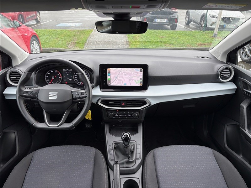 2 prises USB-C , Bluetooth / 6 HP / ABS électronique (système antiblocage des roues) / Affichage de la température extérieure / Airbags frontaux conducteur et passager (passager déconnectable) / Alerte de non-bouclage des ceintures AV/AR / Allumage automatique des projecteurs avec fonction "Coming Home" / Climatisation automatique Climatronic bi-zone avec filtre Air Care / Couvre-coffre rabattable / Direction à assistance électromécanique / Entourages d'aérateurs Gris City / Fixations ISOFIX avec Top Tether intégrées aux sièges AR pour ancrage des sièges enfant / Frein à main en cuir / Front assist avec freinage d?urgence et détection de piétons / Garantie 2 ans, kilométrage illimité / Jantes alliage 15" ENJOY, pneus 185/65 R15 88H / Lampes de lecture AV / Lane Assist - Correcteur de trajectoire / Lave-glace AR à balayage intermittent / Levier de vitesse DSG en cuir / Levier de vitesse DSG en cuir,pommeau BVM en cuir végétal / Mise à jour de la cartographie (2 fois par an pendant 3 ans) / Pack Intérieur / Pare-soleil avec porte-carte côté conducteur / Peinture Rouge Passion / Phares antibrouillard AV avec fonction "Cornering light" / Poignées de portes couleur carrosserie / Pommeau de levier de vitesse cuir synthétique / Projecteurs AV EcoLED et AR LED / Rétroviseur intérieur jour/nuit automatique / Rétroviseurs extérieurs couleur carrosserie / SEAT Connect / Sellerie tissu gris COMO / Sièges AV Confort / Système de navigation avec écran tactile 9.2" / Système d'info-divertissement MediaSystem+ avec écran tactile 8,25'' / Système ?Start-Stop? automatique et dispositif de récupération de l?énergie de freinage / Tableau de bord avec insert Blanc Mat / Tapis de sol / Technologie Full Link (MirrorLink + Android Auto + Apple CarPlay) / Volant multifonctions et levier de vitesse en cuir / Volant sport multifonctions à méplat en cuir Nappa