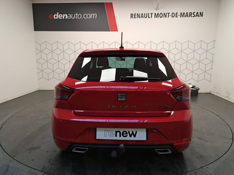 6 HP / ABS électronique (système antiblocage des roues) / Affichage de la température extérieure / Airbags frontaux conducteur et passager (passager déconnectable) / Alerte de non-bouclage des ceintures à l'AV / Allumage automatique des projecteurs avec fonction "Coming Home" / Ciel de pavillon Noir / Climatisation automatique Climatronic bi-zone avec filtre Air Care / Compte-tours électronique / Coques de rétroviseurs Noir Glossy / Digital Cockpit / Direction à assistance électromécanique / Double sortie d'échappement / Eclairage d'ambiance à LED à l'intérieur des portières en rouge ou blanc / Eclairage d'ambiance au niveau de la console centrale et de l'emplacement des pieds / Fixations ISOFIX avec Top Tether intégrées aux sièges AR pour ancrage des sièges enfant / Front assist avec freinage d'urgence et détection de piétons / Garantie 2 ans, kilométrage illimité / Inserts Gris aux portières et volant / Intérieur "FR" / Jantes alliage 17" "DYNAMIC" avec pneus 215/45 R17 91W XL / Kit anti-crevaison / Lave-glace AR à balayage intermittent / Logo "FR" sur le volant / Pack Intérieur / Pare-soleil avec porte-carte côté conducteur / Peinture Rouge Passion / Phares antibrouillard AV avec fonction "Cornering light" / Poignées de portes couleur carrosserie / Rétroviseur intérieur jour/nuit automatique / SEAT Connect / SEAT Drive Profile (4 modes de conduite) Eco, Confort, Sport et Individual / Sellerie tissu Noir "Sound" / Spots de lecture AV / Suspension sport / Système de navigation avec écran tactile 9.2" / Système Multimédia / Tableau de bord en similicuir Noir / Tapis de sol / Technologie Full Link (MirrorLink + Android Auto + Apple CarPlay) / Témoin de niveau de carburant / Volant multifonctions et levier de vitesse en cuir