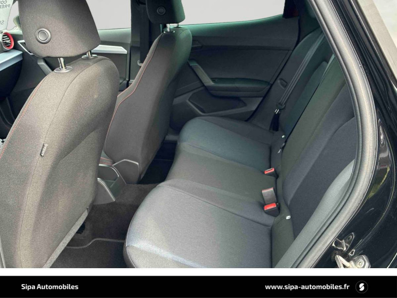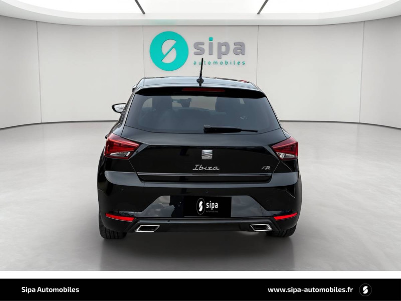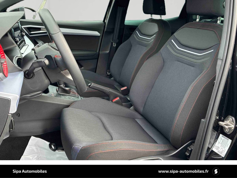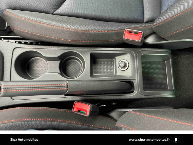 2 Fixations ISOFIX + Top tether intégrées aux sièges AR / 2 lampes de lecture AV / Airbags frontaux, latéraux et rideaux (passager déconnectable) / Alerte de non-bouclage des ceintures AV/AR / Anti-blocage des roues (ABS) et contrôle de stabilitéélectronique (ESC) / Boîte de vitesses à automate sequentiel DSG à 7 rapports / Calandre spécifique Noir Piano avec contour chromé / Ciel de pavillon Noir / Connectivité 2x USB-C et Bluetooth / Contre-portes AV en finition textile / Coques de rétroviseurs Noir Piano / Couvre-coffre rabattable / Détection de fatigue et somnolence / Détection de sous-gonflage des pneumatiques / Digital Cockpit 8" / Eclairage d'accompagnement / Eclairage d'ambiance intérieur LED paramétrable (rouge ou blanc) / Eclairage de plaque d'immatriculation à LED / Entourages d'aérateurs centraux et latéraux gris satinés avec inserts Rouge Laser / Front Assist avec détection des piétons et des cyclistes / Full Link sans fil (MirrorLink + Android Auto + Apple CarPlay) / Garantie 2 ans, kilométrage illimité / Garnitures d'aérateurs rouges / Jantes alliage 17" FR DYNAMIC / Kit anti-crevaison / Lane Assist - aide au maintien dans la voie / Logos "SEAT" satinés AV/AR et sur le volant / Pack Design FR avec inserts Gris Cosmique / Pack Rangement - Accoudoir central - Crochets d'arrimage dans le coffre - Double plancher de coffre / Pack Spring Feux et essuie-glaces automatiques, Climatisation automatique Climatronic, Rétroviseur intérieur jour/nuit automatique, Rétroviseurs extérieurs chauffants rabattables électriquement, Vitres électriques AR / Pack Vision Plus caméra de recul avec aide au stationnement AV et AR / Pare-chocs couleur carrosserie / Pare-soleil avec miroir de courtoisie, avec porte carte côté conducteur / Poignées de portes couleur carrosserie / Projecteurs Full LED et signature lumineuse LED AV/AR / Rétroviseurs extérieurs réglables électriquement intégrant les répétiteurs de clignotants latéraux / SEAT Connect / SEAT Drive Profile-sélection du mode de conduite / Sellerie textile bleue RACING bi-matière avec surpiqûres rouges, planche de bord moussée et contre-portes AV avec inserts Gris Acier / Signature "Ibiza" manuscrite sur le hayon / Système d'info-divertissement MediaSystem+ avec écran tactile HD 8,25'' / Tapis de sol textile AV/AR / TCS (contrôle de la traction) / Volant sport multifonctions à méplat en cuir Nappa perforé avec surpiqûres rouges et logo FR