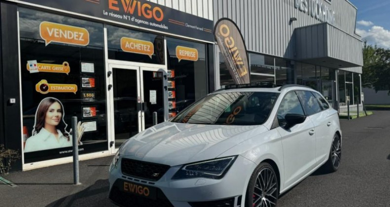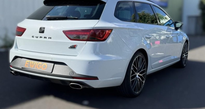 Seat Leon ST 2.0 TSI 290CH CUPRA DSG BVA/RADAR AVANT ARRIERE/ANDROID AUTO CARPLAY break, blanc, 18 cv, 5 portes, première mise en circulation le 28/10/2016, garantie 6 mois. - NOS SERVICES ET PRESTATIONS COMPLÉMENTAIRES - - Visite virtuelle : avant de vous déplacer, visualisez votre futur véhicule sous toutes ses coutures . Contactez-nous pour en voir plus ! - Extension de garantie jusqu'à 60 mois. - Solutions de Financement de 12 à 84 mois. - Livraison dans toute la France métropolitaine (sur devis). - Reprise possible de votre ancien véhicule. - Les informations délivrées par cette annonce sont non contractuelles et données à titre indicatif. Packs disponibles (véhicules éligibles au Label) - Pack Clés en Main - 691 € TTC(¹)(²) Démarches (hors carte grise) | 1/4 de carburant | Nettoyage First | Garantie 6 mois | Label inclus? - Pack Sérénité - 891 € TTC(¹)(²) Démarches (hors carte grise) | 1/2 de carburant | Nettoyage Confort | Garantie 12 mois | Label inclus? - Pack Prestige - 1.091 € TTC(¹)(²) Démarches (hors carte grise) | Plein complet | Nettoyage Prestige | Garantie 12 mois | Label inclus? + Surprise du chef - (¹) Les véhicules non éligibles au Label bénéficient de tarifs préférentiels. Veuillez contacter votre conseiller pour obtenir les conditions tarifaires applicables. (²) Tarif pour les véhicules deux roues motrices dont la valeur de vente est inférieure à 60 000 € TTC. - Véhicule visible sur rendez vous 5 places OPTIONS ET ÉQUIPEMENTS : Audio - Télécommunications : - Android auto - Apple CARPLAY - Bluetooth - GPS - commandes vocales - radio numérique - système de navigation Conduite : - Choix du mode de conduite - Détecteur de pluie - Park assist - Stop & Start - détecteur de pluie - limiteur de vitesse - pack sport - palettes au volant - régulateur de vitesse - sièges sport Couleur : - Peinture métallisée Extérieur : - Capteurs d'aide au stationnement arrière - Phares AR à led - Rétroviseurs latéraux électriques - Sortie d'échappement chromée - Echappement à double sortie - phares directionnels - rétroviseurs électriques - système d'aide au stationnement - toit ouvrant - toit ouvrant panoramique Intérieur : - Pédalier sport - Sièges baquets - accoudoir central - climatisation : multi zone - climatisation multi zone - direction assistée - fermeture centralisée - non fumeur - sièges chauffants - verrouillage à distance - vitres électriques Pack : - Boîte de vitesse automatique - Pneus été - Sièges arrières 1/3 - 2/3 - GPS couleur - nombre de rapports : 6 vitesses - régulateur de distance - volant multifonctions Sellerie : - Intérieur cuir alcantara Sécurité : - Airbags - Contrôle de pression des pneus - ABS - Aide au demarrage en pente - airbag arrière - airbag coté passager - airbags latéraux - phares antibrouillard Autres équipements et informations : - Compatible E-10 - Double des clés - Factures d'entretien - Classe Crit'air : 1 - Puissance kilowatt : 213 kw - puissance réelle : 290 ch - émission CO2 : 154 g/km - état : excellent Référence annonce : d147352