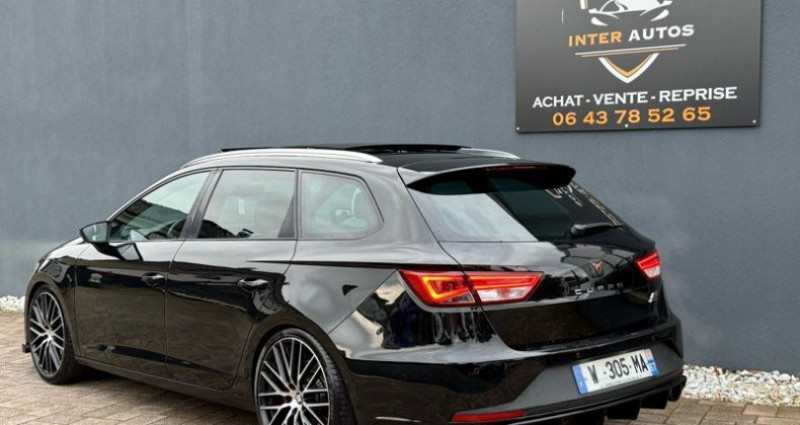 SEAT LEON CUPRA ST 2.0 TSI 280ch BREAK Boîte de vitesse automatique DSG Mise en circulation : 07/2015 Kilométrage : 147500 5 portes 5 places Équipements et options Toit panoramique ouvrant ?Diffuseur, arrière, sport Lame avant sport Ligne d’échappement REMUS Amortisseur ? sport, ??? Disque avant arrière, ventilé ? Feu arrière à LED Line assist ACC Lane assist Front assist Palette au volant Mode : sport ,CUPRA , Eco, individial Climatisation automatique Système Sono Seat sound GPS Navigateur Jantes 19 CUPRA Performance Full link ?LED éclairage d’ambiance ? Intérieur semi cuir blanc Sièges alcantara Limiteur de vitesse Allumage des phares automatiques Feux arrière à LED Navigation GPS Régulateur de vitesse Limiteur de vitesse Ordinateur de bord Radar de stationnement avant radar de stationnement Arière Siège Sport Chauffant Audio - Télécommunications 8 Haut parleurs Ecran tactile Fonction MP3 Interface Media Lecteur CD Lecteur carte SD Prise Jack Prise aux Capteur de luminosité Capteur de pluie Régulateur de vitesse Rétroviseurs électriques Sortie d'échappement sport Vitres arrière et lunette AR surteintées Accoudoir central AV Ordinateur de bord Isofix ABS Esp Airbag Doubles de clés 16990€ Véhicule en très bon état, rien à prévoir Tous nos véhicules bénéficient d'une garantie (moteur ,pont ,boite) Extension de Garantie de 12 à 48 mois Contrôle technique moins de 6 mois Échange , Reprise ou achat de votre ancien véhicule est possible Pour les démarches administratives veuillez vous munir des pièces suivantes - Pièces d’identité - Permis de conduire - Justificatif de domicile moins de 6 mois Sauf erreurs de saisies Pour plus d'infos veuillez nous joindre par téléphone ou par mail Inter autos 25 Rue de Haguenau 67240 Bischwiller Visible sur RDV