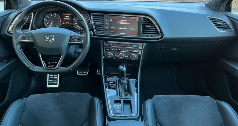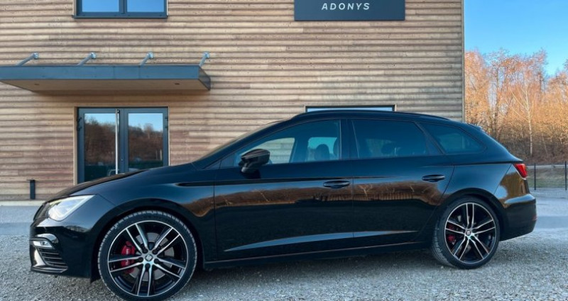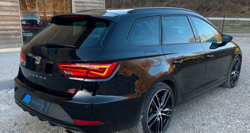 Adonys Auto vous propose : Cette Seat Leon Cupra ST 2.0 TSI 300 DSG6 Immatriculée le 16/05/2017 totalisant 85 600 Kms, elle est proposée au prix de 23 990 €. Des chronos et un châssis du tonnerre, pour un rapport performance / coût imbattable : en substance, on peut facilement résumer le positionnement de la Leon Cupra, surtout pour cette génération, qui a profité à son lancement de la plate-forme MQB. Bien plus efficace que les précédentes Leon Cupra : Seat nous a servi une vraie terreur chez les tractions survitaminées, outre ses 10 ch de gagnés, le 2.0 TSI voit également son couple maximal progresser : 30 Nm de plus, soit 380 Nm désormais, toujours sur une plage d'utilisation très large (de 1.800 à 5.500 tours). La Cupra ST ayant été sacrée a sa sortie break familial le plus rapide sur le mythique tracé du Nürburgring . Toujours bon à prendre, pour l'image... On en retient surtout le train avant ultra-mordant et efficace. La direction bien consistante laisse un ressenti précis de ce qui se passe en la jetant en courbe. Notamment sa motricité difficile à prendre en défaut, grâce à son autobloquant Haldex. Notre modèle propose les équipements suivants : - Peinture métallisée : Mythical Black - Grand toit ouvrant entrebaillable & occultant - Pack hiver : lave phares , buses de lave glace chauffantes & sièges avants chauffants - Calandre noire - Chassis adaptatif DCC - Climatisation automatique bi-zones - Connexion téléphone bluetooth - Full link : Apple Carplay , Android auto & Mirrorlink - Jantes alliage 19'' Cupra black - Seat Drive mode - Rétroviseurs extérieurs dégivrants & rabattables - Seat sound system - Sièges sport alcantara - Projecteurs full led Nous sommes capable de financer votre véhicule avec notre partenaire financier et de vous le garantir sur la durée de financement. Possibilité d’extension de garantie sur mesure. Pour tous renseignements complémentaires nous sommes à votre disposition.
