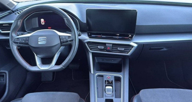 Cylindrée : 1395 cm3 Nb. Vitesse : 6 - Pack Drive Assist XL *** Avec : ACC Prédictif *** Avec : Arrêt d'urgence *** Avec : Exit Assist - assistant de sortie de stationnement AR *** Avec : Light assist *** Avec : Régulateur de vitesse adaptatif ACC *** Avec : Side Assist - surveillance d'angles morts *** Avec : Traffic Sign Recognition reconnaissance des panneaux de signalisation *** Avec : Travel Assist *** Avec : Volant chauffant - Amortissement piloté avec direction progressive - Airbags latéraux AR - Alarme - Pack noir glossy extérieur - Câble de recharge Mode 3 pour wallbox - Pre-Crash système de sécurité prédictif permettant d'activer la prétension des ceintures et la fermeture des vitres et du toit en cas de collision imminente - Aide au stationnement AR - Aide au stationnement AV - Allumage automatique des phares et essuie-glace - Eclairage d'ambiance intérieur à LED personnalisable - Frein à main électrique avec aide au démarrage en côte - Inserts Gris Aluminium sur la planche de bord - Jantes alliage 18 Terramar, pneus 225/40 R18 92Y - Lane Assist: Alerte le conducteur en cas de chevauchement involontaire de ligne et corrige automatiquement la trajectoire - Park Assist : Système d'aide active au stationnement en créneau et en bataille - Pommeau de levier de vitesse cuir - Projecteurs antibrouillard à LED - Projecteurs Full LED avec lumière d'approche projetant Hola! au sol et bandeau de LED AR avec clignotants dynamiques - Système de navigation avec écran tactile 10'' et Full Link avec Apple CarPlay sans fil - Volant cuir multifonctions - 2 ports USB-C AR - 6 Airbags (frontaux, latéraux, rideaux) - ABS - Accoudoir central AR - Accoudoir central AV - Alerte de non-bouclage des ceintures à l'AV - Appel d'urgence - ASR - Banquette AR rabattable 2/3-1/3 - Barres de toit noires - Bluetooth - Calandre spécifique gris Cosmo - Caméra de recul - Ciel de pavillon noir - Climatronic 3 zones - Commande vocale - Connectivity Box avec chargeur à induction - Coques de rétroviseurs Gris Cosmo - Crochets d'arrimage dans le coffre - Câble de recharge pour prise domestique - Diffuseur AR spécifique - Digital Cockpit 10,25 - Désactivation airbag passager - Détecteur de fatigue - ESC et alerte de pression des pneumatiques - Filtre à particules essence - Fixation ISOFIX sur sièges AR - Front Assist avec détection des piétons et des cyclistes - Garantie 2 ans, kilométrage illimité - Hayon électrique avec Virtual Pedal - Indicateur de changement de rapport de vitesse - Inserts Gris Cosmo dans le pare-chocs AV - Keyless Access: Accès et démarrage sans clé - Kit anti-crevaison - Ordinateur de bord 3,5'' avec affichage de la température extérieure - Pare-soleil avec porte-carte côté conducteur - Plaques de seuils de portes rétroéclairées - Poignées de portes couleur carrosserie - Radio Numérique DAB - Réglage lombaire du siège passager - Régulateur/Limiteur de vitesse - Rétroviseur intérieur électrochrome - Rétroviseurs extérieurs rabattables électriquement - Rétroviseurs extérieurs électriques et chauffants - SEAT Connect - SEAT Drive Profile-sélection du mode de conduite - Siège conducteur réglable électriquement avec fonction mémoire - Sièges Sport - Spots de lecture AV - Système break 1 seconde - Tapis de sol - Verrouillage centralisé à distance à télécommande, avec verrouillage de la trappe à carburant - Vitres AR surteintées - Vitres AV/AR électriques - Volant spécifique avec logo FR
