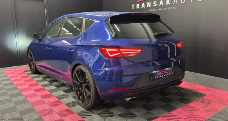 SEAT LEON CUPRA 2.0 TSI 300ch DSG6 - RÉVISION À JOUR, berline, bleu, 19 cv, 5 portes, première mise en circulation le 23/10/2018, garantie : 3 mois. Prix TTC : 24 990 € 5 places OPTIONS ET ÉQUIPEMENTS : Audio - Télécommunications : - Commande vocale pour téléphone - GPS - Kit téléphone main libre bluetooth - Système audio BOSE - Système de navigation Conduite : - Allumage automatique des phares - Carte mains-libres - Différentiel à glissement limité - Démarrage sans clé - Détecteur pluie - Entrée sans clé - Limiteur de vitesse - Régulateur de vitesse - Système Start/Stop - Sélection du mode de conduite Couleur : - Peinture laquée / opaque Extérieur : - Caméra de recul - Feux arrière LED - Feux avant LED - Jantes/roues en alliage léger 19 - Radar de stationnement arrière - Radar de stationnement avant - Rétroviseurs extérieurs dégivrants - Rétroviseurs extérieurs rabattable électriquement - Rétroviseurs extérieurs électriques - Rétroviseurs rabattables électriquement - Toit ouvrant panoramique - Vitres arrière surteintées Intérieur : - Accoudoir avant - Banquette arrière partagée et rabattable - Climatisation - Climatisation automatique - Climatisation automatique bizone - Lunette arrière électrique - Lève-vitres avant électriques - Ordinateur de bord - Sièges avant Sport - Sièges avant chauffants - Système information conducteur Pack : - Dispositif de recharge à induction - Frein de parking automatique - Frein de stationnement électrique - Régulateur de distance - Soundsystem - Verrouillage centralisé Sellerie : - Sièges en alcantara Sécurité : - Airbag conducteur - Airbag latéral conducteur et passager - Airbag passager - Airbags rideaux arrière - Airbags rideaux avant - Contrôle de traction - Contrôle pression pneus (RDC) - ESP (programme de stabilité électronique) - Fixation pour siège enfant - Phares antibrouillard Autres équipements et informations : - GPS tactile - Installation téléphone mains libres - Système anti bloquage (ABS) - USB jack - consommation extra urbaine: 5.80l/100 - consommation urbaine: 8.50l/100 - consommation mixte: 6.80l/100 - Des erreurs peuvent se glisser dans nos annonces, merci de nous contacter pour plus de renseignements sur ces dernières. Prix hors frais de mise à la route et carte grise Garantie et reprise possible. Véhicule visible UNIQUEMENT sur rendez-vous à l'agence de Metz. TRANSAKAUTO METZ 4 rue du Chêne Brûlé 54700 Lesménils TRANSAKAUTO, réseau national spécialisé dans le courtage automobile pour particuliers, assure les transactions et la gestion de tous les éléments administratifs. Plus de 200 agences à votre disposition dans toute la France pour acheter ou vendre votre véhicule d'occasion ! A bientôt. Référence annonce : 4769