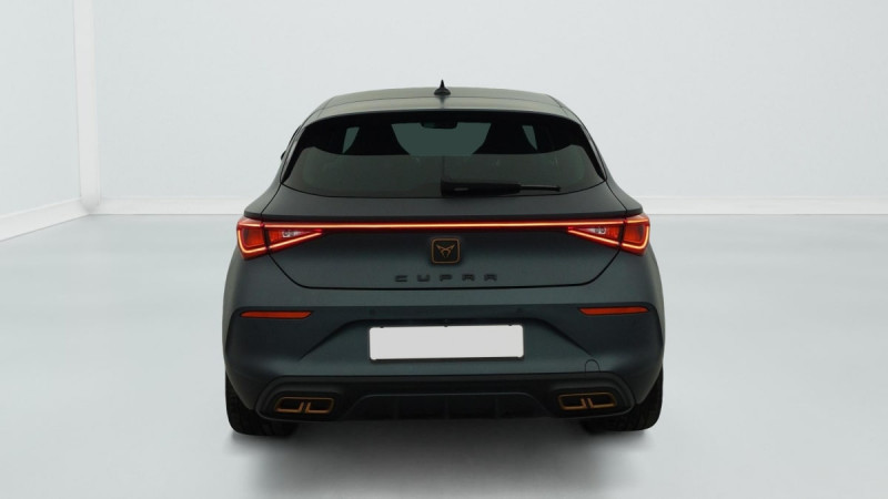 Keyless Access : Accès et démarrage mains-libres / Park Assist avec aide au stationnement AV et AR / Connectivity Box avec chargeur à induction / Kit anti-crevaison / Ciel de pavillon Noir / Digital Cockpit: combiné d'instruments digital haute résolution 10,25" / Feux AR LED avec bandeau Infinite Light avec clignotants à défilement et cérémonie de bienvenue AR / Eclairage de bienvenue avec projection du logo CUPRA au sol / Eclairage d'ambiance personnalisable / Entourage de vitres Noir Glossy / Projecteurs anti-brouillard avec Cornering Light et Coming Home / Réglage en hauteur et lombaire des sièges AV / 2 prises USB-C éclairées à l'AV et 2 à l'AR / Système audio 6 HP avec contrôle vocal "Hola Hola" / Système de navigation 3D sur écran tactile HD10" / Câble de recharge Mode 2 pour prise domestique / Fixations ISOFIX avec Top-Tether à l'AR / Régulation adaptative du châssis DCC / Rétroviseur intérieur électrochrome / Volant CUPRA chauffant /