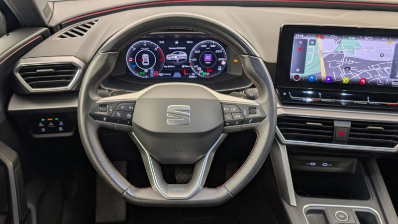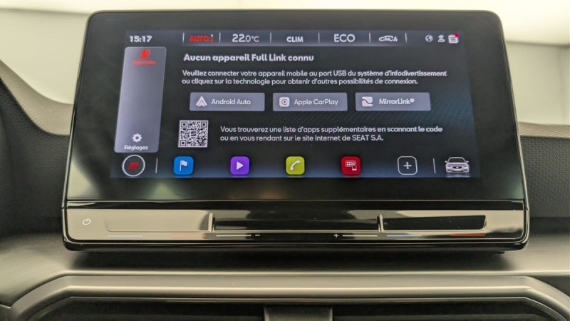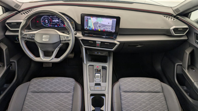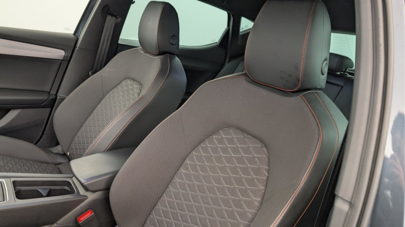 Jantes en alliage léger 17" avec pneus 225/45 R17 / Sellerie en tissu / Kit anti-crevaison / Ordinateur de bord 3,5'' avec affichage de la température extérieure / Alerte de non-bouclage des ceintures à l'AV / Commande vocale / Ciel de pavillon noir / Keyless Access: Accès et démarrage sans clé / Lane Assist: Alerte le conducteur en cas de chevauchement involontaire de ligne et corrige automatiquement la trajectoire / Connectivity Box avec chargeur à induction / Park Assist : Système d'aide active au stationnement en créneau et en bataille / ESC et alerte de pression des pneumatiques / Front Assist avec détection des piétons et des cyclistes / Frein à main électrique avec aide au démarrage en côte / Climatronic 3 zones / Digital Cockpit 10,25" / Projecteurs Full LED avec lumière d'approche projetant "Hola!" au sol et bandeau de LED AR avec clignotants dynamiques / Eclairage d'ambiance intérieur à LED personnalisable / Réglage lombaire du siège passager / SEAT Drive Profile-sélection du mode de conduite / Système de navigation avec écran tactile 10'' et Full Link avec Apple CarPlay sans fil / Câble de recharge Mode 2 pour prise de courant domestique 8A - 1,8kW / Désactivation airbag passager /