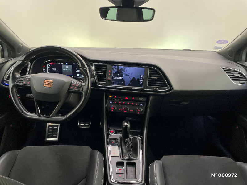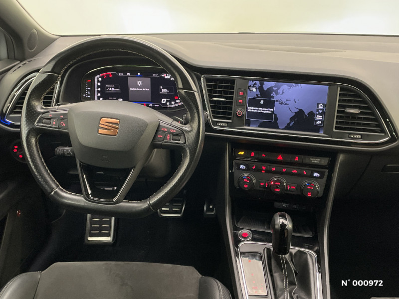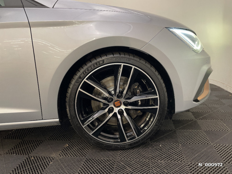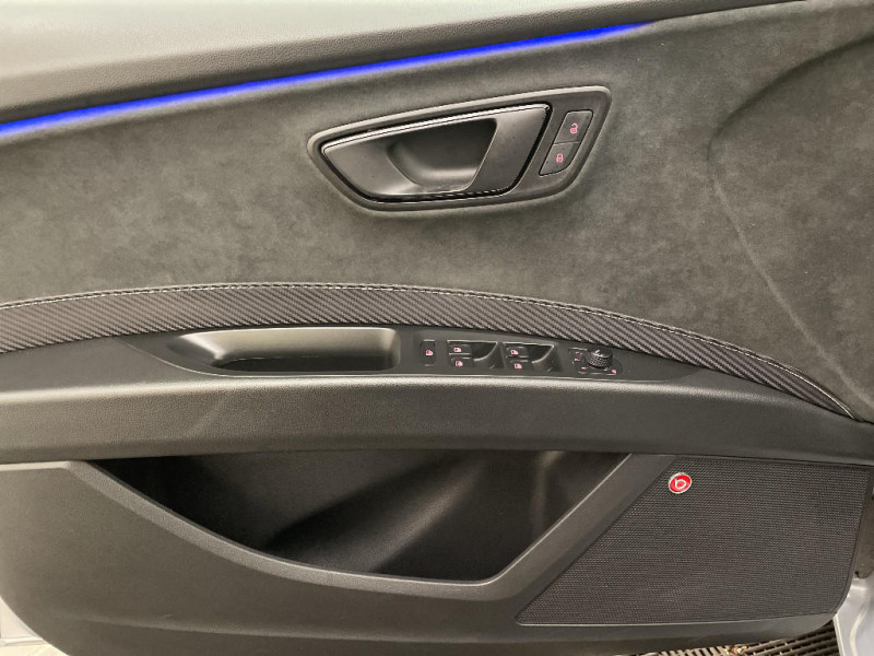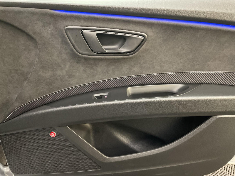 Pare-chocs extérieurs CUPRA / Seuils de portes CUPRA en aluminium / Volant à méplat CUPRA / Crochet d'arrimage dans le coffre / Frein à main électrique / 4 HP / Spots de lecture l'AV / Pare-soleil avec miroir de courtoisie, avec porte carte côté conducteur / Garantie 2 ans kilométrage illimité / Rails de toit noirs / Tiroirs de rangement sous les sièges AV / Tapis de sol / Contrôle vocal / Calandre noire / Etriers de freins rouges avec logo CUPRA / Applications intérieures Noir laqué / Deux sorties d'échappement chromées / Palettes au volant avec version DSG / Connexion USB, carte SD / GPS Europe tactile / Châssis sport CUPRA (-10 mm vs Leon FR) / Full Link (MirrorLink + Android Auto + Apple CarPlay) / Peinture vernie Bleu Méditerranéen / Inscription TSI / ASR / Jantes alliage 19" CUPRA BLACK 235/35 R19 91Y / Suspension pilotée DCC (confort/sport/cupra) / Connectivity Box avec chargeur à induction / Digital Cockpit / Eclairage intérieur à LED / Etriers de freins noirs avec inscription Cupra / Système d'infotainment Media System Coulour / Peinture Rouge Passion / Poignées de portes couleur carrosserie / Désactivation airbag passager / Indicateur de changement de rapport de vitesse / 7 Airbags (2 AV / 2 rideaux / 2 latéraux / 1 genoux conducteur) / Alerte de non-bouclage des ceintures à l'AV / ESC avec alerte de pression des pneumatiques / Verrouillage centraliséà distance à télécommande, avec verrouillage de la trappe à carburant / Blocage de différentiel mécanique à régulation électronique (VAQ) / SEAT Drive Profile CUPRA, 4 modes de conduite / Mode CUPRA avec désactivation de l'ESC