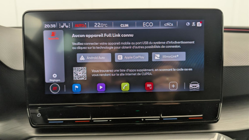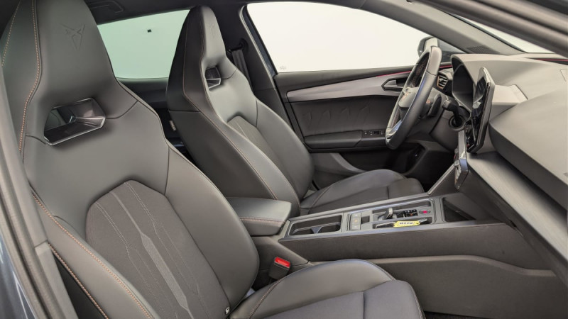Park Assist avec aide au stationnement AV et AR / Connectivity Box avec chargeur à induction / Kit anti-crevaison / Ciel de pavillon Noir / Digital Cockpit: combiné d'instruments digital haute résolution 10,25" / Feux AR LED avec bandeau Infinite Light / Système de navigation 3D sur écran tactile HD12" / Entourage de vitres Noir Glossy / Projecteurs anti-brouillard avec Cornering Light et Coming Home / Réglage en hauteur et lombaire des sièges AV / 2 prises USB-C éclairées à l'AV et 2 à l'AR / Fixations ISOFIX avec Top-Tether à l'AR / Jantes en alliage 18" Performance usinées / Régulation adaptative du châssis DCC / Rétroviseur intérieur électrochrome / Sièges BAQUETS similicuir/tissu Noir / Volant CUPRA chauffant / Câble de recharge Mode 2 8A pour prise domestique / Accès et démarrage mains-libres / Système audio 7 HP avec contrôle vocal "Hola Hola" /