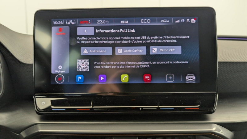 Keyless Access : Accès et démarrage mains-libres / Park Assist avec aide au stationnement AV et AR / Connectivity Box avec chargeur à induction / Kit anti-crevaison / Ciel de pavillon Noir / Digital Cockpit: combiné d'instruments digital haute résolution 10,25" / Feux AR LED avec bandeau Infinite Light avec clignotants à défilement et cérémonie de bienvenue AR / Eclairage de bienvenue avec projection du logo CUPRA au sol / Eclairage d'ambiance personnalisable / Entourage de vitres Noir Glossy / Projecteurs anti-brouillard avec Cornering Light et Coming Home / Réglage en hauteur et lombaire des sièges AV / 2 prises USB-C éclairées à l'AV et 2 à l'AR / Système audio 6 HP avec contrôle vocal "Hola Hola" / Système de navigation 3D sur écran tactile HD10" / Câble de recharge Mode 2 pour prise domestique / Fixations ISOFIX avec Top-Tether à l'AR / Régulation adaptative du châssis DCC / Rétroviseur intérieur électrochrome / Volant CUPRA chauffant /