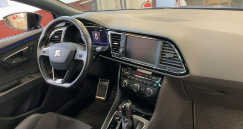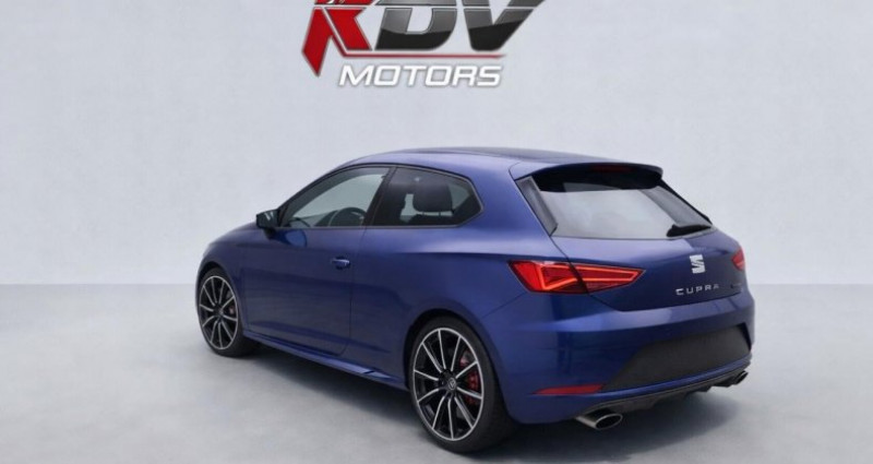 ======= OPTIONS ======= Aide au stationnement avant arrière Applications intérieures « Noir laqué » Blocage de différentiel mécanique à régulation électronique (VAQ) Calandre noire Caméra de recul Châssis sport CUPRA Climatisation automatique ?Climatronic' Connectivity Box avec chargeur à induction Connexion Bluetooth Contrôle vocal Détecteur de pluie et allumage automatique des projecteurs Deux sorties d'échappement chromées Direction progressive Eclairage intérieur à LED Ecran tactile 8'' Etriers de freins rouges avec logo CUPRA Frein à main électrique Full Link (MirrorLink + Android Auto + Apple CarPlay) GPS Europe tactile Jantes 19'' CUPRA BLACK Mode CUPRA avec désactivation de l'ESC Palettes au volant Parechocs extérieurs CUPRA Peinture Bleu Méditerranéen Prise USB et carte SD Projecteurs antibrouillard à LED Projecteurs Full LED et feux arrière à LED Rétroviseurs extérieurs rabattables électriquement Rétroviseurs noirs Roue de secours de taille réduite SEAT Drive Profile CUPRA, 4 modes de conduite SEAT Sound system (9 haut-parleurs et caisson de basses à faible encombrement) Seuils de portes CUPRA en aluminium Sièges sport Alcantara Suspension pilotée DCC (normal confort sport) Système d'accès et de démarrage sans clé Tiroir de rangement sous les sièges avant Vitres arrières surteintées Vitres électriques Volant à méplat CUPRA ======= EQUIPEMENTS DE SERIE ======= Aide au stationnement avant arrière Applications intérieures « Noir laqué » Blocage de différentiel mécanique à régulation électronique (VAQ) Calandre noire Caméra de recul Châssis sport CUPRA Climatisation automatique Climatronic' Connectivity Box avec chargeur à induction Connexion Bluetooth Contrôle vocal Détecteur de pluie et allumage automatique des projecteurs Deux sorties d'échappement chromées Direction progressive Eclairage intérieur à LED Ecran tactile 8'' Etriers de freins rouges avec logo CUPRA Frein à main électrique Full Link (MirrorLink + Android Auto + Apple CarPlay) GPS Europe tactile Jantes 19'' CUPRA BLACK Mode CUPRA avec désactivation de l'ESC Palettes au volant Parechocs extérieurs CUPRA Peinture Bleu Méditerranéen Prise USB et carte SD Projecteurs antibrouillard à LED Projecteurs Full LED et feux arrière à LED Rétroviseurs extérieurs rabattables électriquement Rétroviseurs noirs Roue de secours de taille réduite SEAT Drive Profile CUPRA, 4 modes de conduite SEAT Sound system (9 haut-parleurs et caisson de basses à faible encombrement) Seuils de portes CUPRA en aluminium Sièges sport Alcantara Suspension pilotée DCC (normal confort sport) Système d'accès et de démarrage sans clé Tiroir de rangement sous les sièges avant Vitres arrières surteintées Vitres électriques Volant à méplat CUPRA Nb. Vitesses : 6 Véhicule Importé : Non Conso Mixte : 6.70l/100