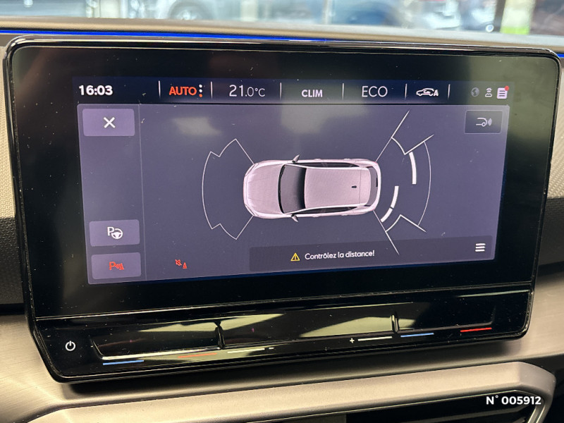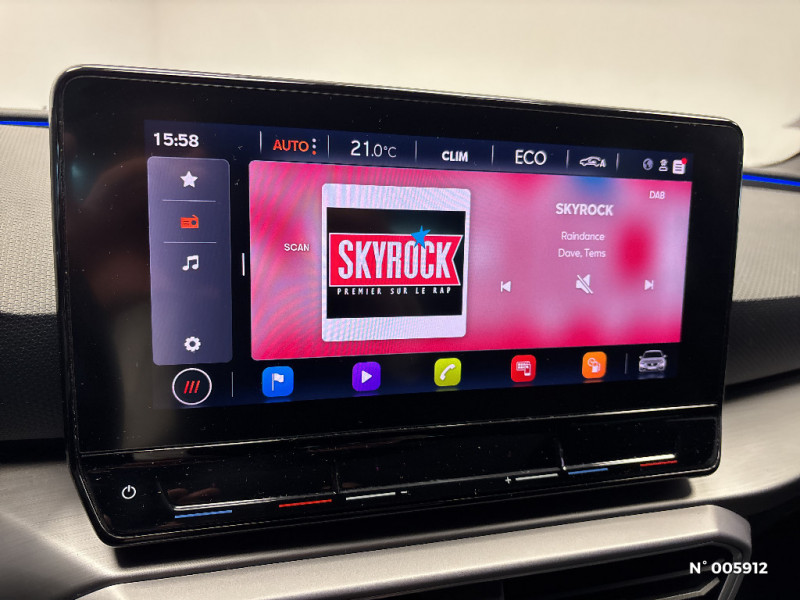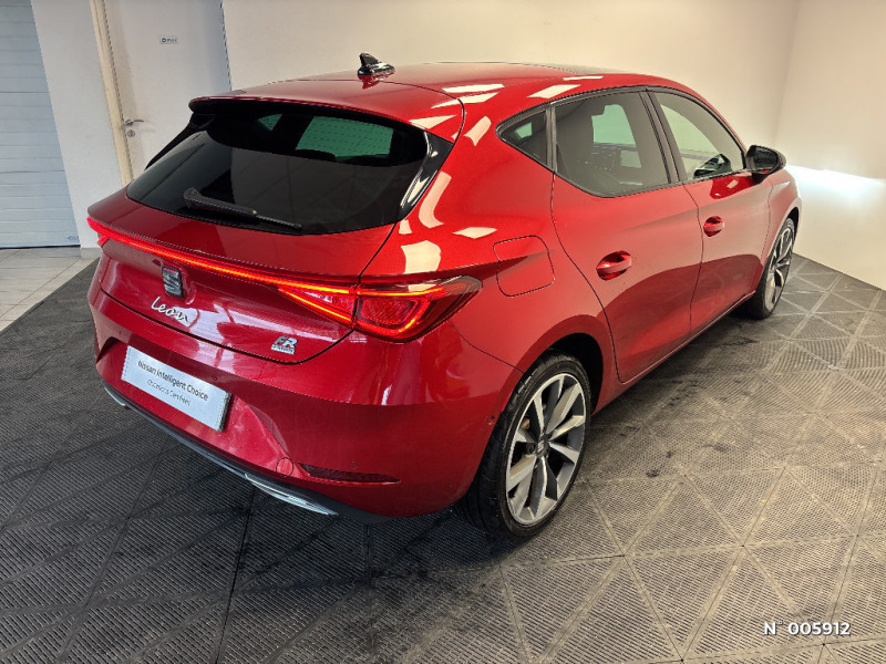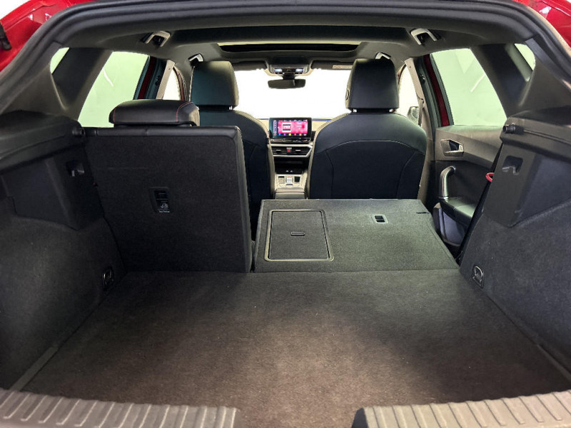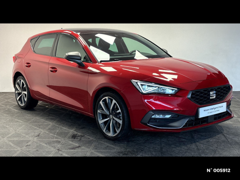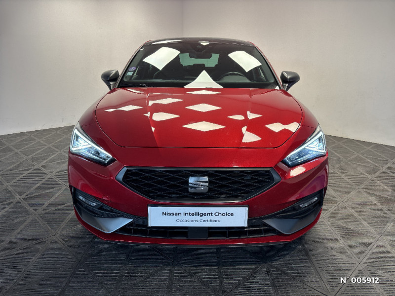 Ciel de toit Noir / Climatronic 3 zones / Commande vocale / Connectivity Box - Amplification du signal et chargeur à induction / Connectivity Box avec chargeur à induction / Coques de rétroviseurs Gris Cosmo / Crochets d'arrimage dans le coffre / Désactivation airbag passager / Diffuseur AR spécifique / Digital Cockpit 10,25" / Eclairage d'ambiance intérieur à LED personnalisable / ESC et alerte de pression des pneumatiques / Sièges Sport en suédine noire avec surpiqûres rouges / Spots de lecture AV / Surpiqûres rouges dans le sellerie / Système de navigation avec écran tactile 10'' et Full Link avec Apple CarPlay sans fil / Tapis de sol / Verrouillage centraliséà distance à télécommande, avec verrouillage de la trappe à carburant / Volant spécifique avec logo FR / 2 ports USB AV et 2 ports USB AR / Frein à main électrique avec aide au démarrage en côte / Front Assist avec détection des piétons et des cyclistes / Full Link sans fil pour Apple CarPlay et filaire pour Android Auto / Garantie 2 ans, kilométrage illimité / Indicateur de changement de rapport de vitesse / Inserts Gris Aluminium sur la planche de bord / Inserts Gris Cosmo dans le pare-chocs AV / Jantes alliage 18" Terramar, pneus 225/40 R18 92Y / Keyless Access: Accès et démarrage sans clé / Keyless Access pour alarme: Accès et démarrage sans clé / Kit anti-crevaison / Lane Assist: Alerte le conducteur en cas de chevauchement involontaire de ligne et corrige automatiquement la trajectoire / Ordinateur de bord 3,5'' avec affichage de la température extérieure / Pare-soleil avec porte-carte côté conducteur / Park Assist : Système d'aide active au stationnement en créneau et en bataille / Plaques de seuils de portes rétroéclairées / Poignées de portes couleur carrosserie / Pommeau de levier de vitesse cuir / Projecteurs Full LED avec lumière d'approche projetant "Hola!" au sol et bandeau de LED AR avec clignotants dynamiques / Réglage lombaire du siège passager / Rétroviseur intérieur électrochrome / SEAT Connect / SEAT Drive Profile-sélection du mode de conduite / Sellerie suédine Noire / Sellerie suédine Noire avec surpiqûres rouges / Sellerie suédine Noire avec surpiqûres rouges / Siège conducteur réglable électriquement avec fonction mémoire / Alerte de non-bouclage des ceintures à l'AV / ASR / Câble de recharge Mode 2 pour prise de courant domestique 8A - 1,8kW / Câble de recharge pour prise domestique / Calandre spécifique gris Cosmo / Ciel de pavillon noir