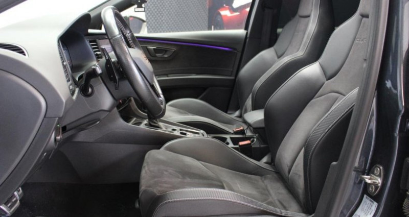 ======= OPTIONS ======= Pack Black Pack Techno ======= EQUIPEMENTS DE SERIE ======= Aide au stationnement avant arrière Applications intérieures « Noir laqué » Becquet de toit en fibre de carbone Blocage de différentiel mécanique à régulation électronique (VAQ) Calandre noire Caméra de recul Châssis sport CUPRA Climatisation automatique Climatronic' Connectivity Box avec chargeur à induction Connexion Bluetooth Contrôle vocal Détecteur de fatigue avec alerte ceinture de sécurité Détecteur de pluie et allumage automatique des projecteurs Deux sorties d'échappement chromées Digital Cockpit : combiné d instruments digital haute résolution couleur de 10,25 Direction progressive Frein à main électrique Full Link (MirrorLink + Android Auto + Apple CarPlay) GPS Europe tactile Jantes 19'' CUPRA MACHINED COPPER Jupes latérales avec insert en fibre de carbone Lame de pare-choc avant en fibre de carbone Mode CUPRA avec désactivation de l'ESC Palettes au volant Parechocs extérieurs CUPRA Prise USB et carte SD Projecteurs antibrouillard à LED Projecteurs Full LED et feux arrière à LED Rétroviseurs extérieurs en fibre de carbone Rétroviseurs extérieurs rabattables électriquement SEAT Drive Profile CUPRA, 4 modes de conduite Seuils de portes CUPRA en aluminium Sièges baquet Top Sport Alcantara Sound System Beats Audio Suspension pilotée DCC (confort sport cupra) Technologie WLAN Vitres arrières surteintées Volant à méplat CUPRA Nb. Vitesses : 7 Conso Mixte : l/100