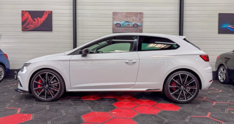 ======= OPTIONS ======= Pack Cupra Line Black pneumatiques standard Sièges baquet Top Sport Alcantara Aide au stationnement avant arrière Applications intérieures « Noir laqué » Blocage de différentiel mécanique à régulation électronique (VAQ) Calandre noire Caméra de recul Châssis sport CUPRA Climatisation automatique ?Climatronic' Connectivity Box avec chargeur à induction Connexion Bluetooth Contrôle vocal Détecteur de pluie et allumage automatique des projecteurs Deux sorties d'échappement chromées Direction progressive Eclairage intérieur à LED Ecran tactile 8'' Etriers de freins rouges avec logo CUPRA Frein à main électrique Full Link (MirrorLink + Android Auto + Apple CarPlay) GPS Europe tactile Jantes 19'' CUPRA BLACK Mode CUPRA avec désactivation de l'ESC Palettes au volant Parechocs extérieurs CUPRA Peinture Bleu Méditerranéen Prise USB et carte SD Projecteurs antibrouillard à LED Projecteurs Full LED et feux arrière à LED Rétroviseurs extérieurs rabattables électriquement Rétroviseurs noirs Roue de secours de taille réduite SEAT Drive Profile CUPRA, 4 modes de conduite SEAT Sound system (9 haut-parleurs et caisson de basses à faible encombrement) Seuils de portes CUPRA en aluminium Sièges sport Alcantara Suspension pilotée DCC (normal confort sport) Système d'accès et de démarrage sans clé Tiroir de rangement sous les sièges avant Vitres arrières surteintées Vitres électriques Volant à méplat CUPRA ======= EQUIPEMENTS DE SERIE ======= Aide au stationnement avant arrière Applications intérieures « Noir laqué » Blocage de différentiel mécanique à régulation électronique (VAQ) Calandre noire Caméra de recul Châssis sport CUPRA Climatisation automatique Climatronic' Connectivity Box avec chargeur à induction Connexion Bluetooth Contrôle vocal Détecteur de pluie et allumage automatique des projecteurs Deux sorties d'échappement chromées Direction progressive Eclairage intérieur à LED Ecran tactile 8'' Etriers de freins rouges avec logo CUPRA Frein à main électrique Full Link (MirrorLink + Android Auto + Apple CarPlay) GPS Europe tactile Jantes 19'' CUPRA BLACK Mode CUPRA avec désactivation de l'ESC Palettes au volant Parechocs extérieurs CUPRA Peinture Bleu Méditerranéen Prise USB et carte SD Projecteurs antibrouillard à LED Projecteurs Full LED et feux arrière à LED Rétroviseurs extérieurs rabattables électriquement Rétroviseurs noirs Roue de secours de taille réduite SEAT Drive Profile CUPRA, 4 modes de conduite SEAT Sound system (9 haut-parleurs et caisson de basses à faible encombrement) Seuils de portes CUPRA en aluminium Sièges sport Alcantara Suspension pilotée DCC (normal confort sport) Système d'accès et de démarrage sans clé Tiroir de rangement sous les sièges avant Vitres arrières surteintées Vitres électriques Volant à méplat CUPRA Nb. Vitesses : 6 Véhicule Importé : Non Conso Mixte : 6.70l/100