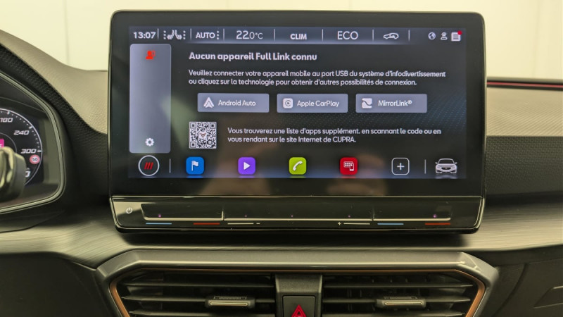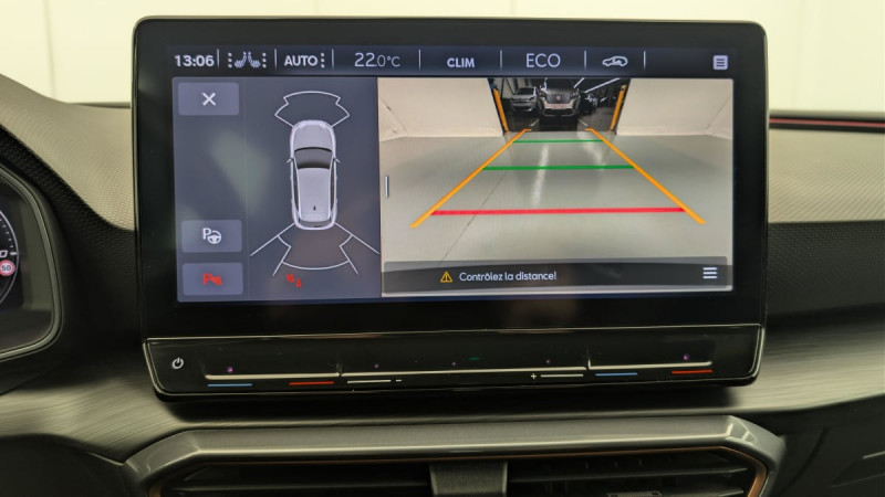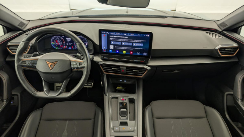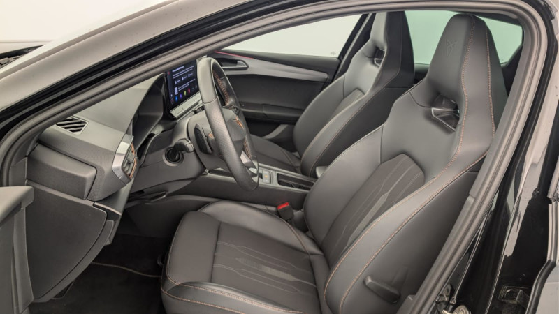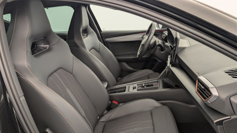 Park Assist avec aide au stationnement AV et AR / Connectivity Box avec chargeur à induction / Kit anti-crevaison / Digital Cockpit: combiné d'instruments digital haute résolution 10,25" / Feux AR LED avec bandeau Infinite Light / Eclairage d'ambiance personnalisable / Système de navigation 3D sur écran tactile HD12" / Projecteurs anti-brouillard avec Cornering Light et Coming Home / Réglage en hauteur et lombaire des sièges AV / 2 prises USB-C éclairées à l'AV et 2 à l'AR / Fixations ISOFIX avec Top-Tether à l'AR / Direction dynamique / Jantes en alliage 18" Performance usinées / Rétroviseur intérieur électrochrome / Volant CUPRA chauffant / Câble de recharge Mode 2 8A pour prise domestique / Accès et démarrage mains-libres / Amortissement piloté DCC / Sièges BAQUETS tissu Noir / similicuir avec surpiqûres Copper /