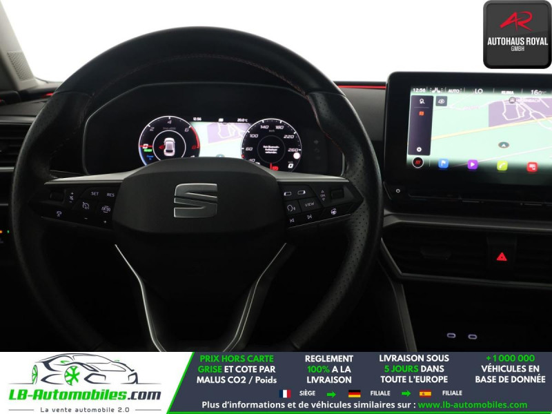 Référence : 1211357 Vos Avantages chez LB-AUTOMOBILES.com / Prix affiché TTC Livré hors carte grise / Livraison sous 10 jours dans toute la France hors 31 / Pas d?avance de frais paiement du véhicule 100% à la livraison par virement. Seat Leon Neuf remisée, Seat Leon Occasion Toulouse Beaupuy 31850, Seat Leon Véhicule sorti de réseau collaborateur, Seat Leon import, Seat Leon importateur, Seat Leon Livraison possible dans toute la France sous 5 jours, Seat Leon, Seat Leon Location Option Achat, Seat Leon LLD, Seat Leon Longue Durée, Seat Leon TVA récupérable. Possibilité d'extension de garantie 12, 24,36 mois, Pour tout autres voitures import neufs ou occasions collaborateur fortement remisée, Mandataire Audi, Mandataire BMW, Mandataire Volkswagen, Mandataire Mercedes, Mandataire Peugeot Espagne, Mandataire Renault Espagne, Porsche import, Mandataire Citroën Espagne, Mandataire Seat Espagne, n'hésitez pas à nous contacter. « Sous réserve de vente préalable et erreur de saisie » Principaux équipements : - ABS - Accoudoir - Android Auto - Antidémarrage - Apple CarPlay - Assistance au freinage d'urgence - Assistance de démarrage en côte - Assistant feux de route - Avertisseur de franchissement de ligne - Bluetooth - Boîte de vitesses robotisée - Capteur de lumière - Capteur de pluie - Chargement par induction pour smartphones - Cockpit numérique - Commande vocale - Contrôle de la pression des pneus - Direction assistée - Éclairage d'ambiance - Écran tactile - ESP - Fermeture centralisée - Feux de jour LED - Garantie - GPS - Isofix - Jantes alliage - Kit de réparation d'urgence des pneus - Kit mains libres - Ordinateur de bord - Package hiver - Pack sport - Phare antibrouillard - Phares LED - Port USB - Radio DAB - Régulateur de vitesse adaptatif - Rétroviseur extérieur électrique - Rétroviseur intérieur anti-éblouissement automatique - Sièges chauffants - Sièges sport - Streaming musical intégré - Support lombaire - Système antipatinage - Système de détection de la fatigue - Système de reconnaissance des panneaux de signalisation - Système de sonorisation - Système Stop & Start - Traction avant - Véhicule non-fumeur - Verrouillage centralisé sans clé - Vitres électriques - Vitres teintées - Volant en cuir - Volant multifonction